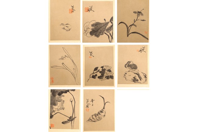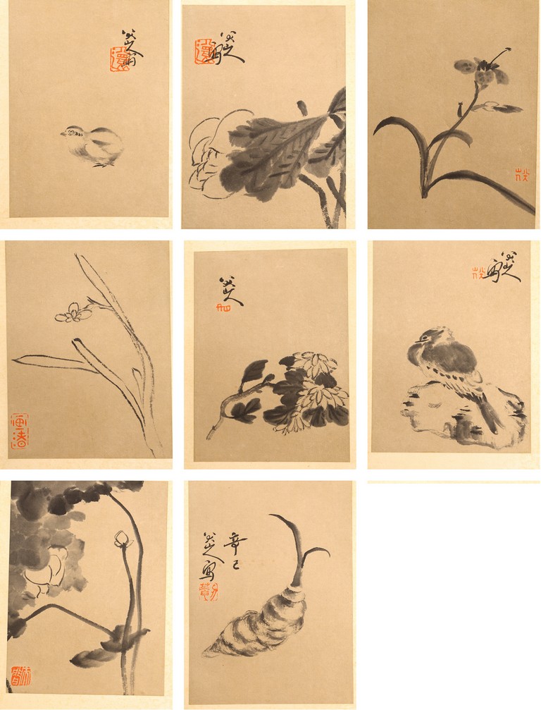 Ink on paper. Birds and flowers. Eight leaf album. Signed Bada Shanren with seal marks.
