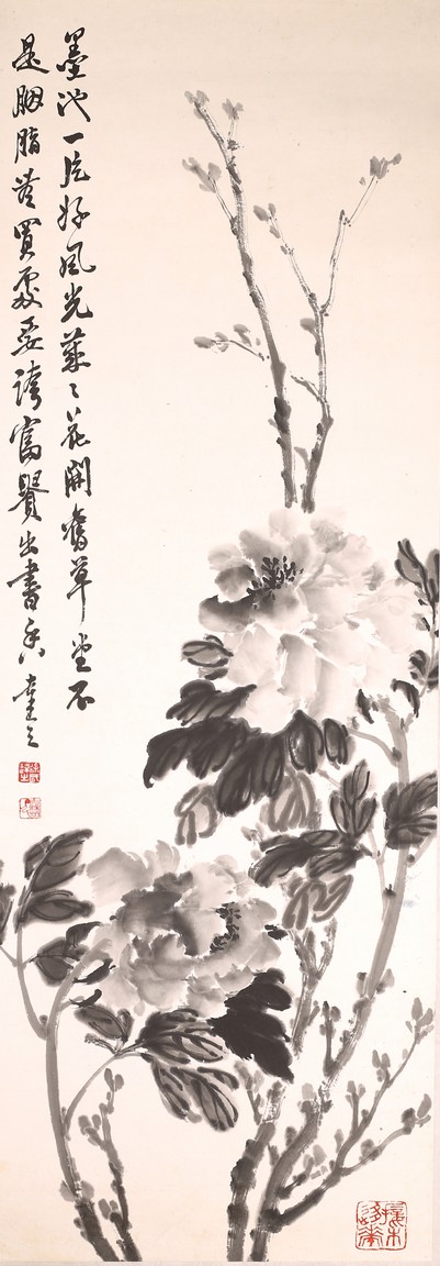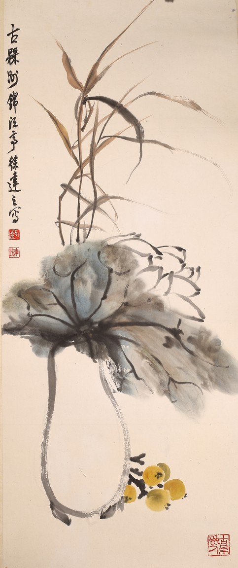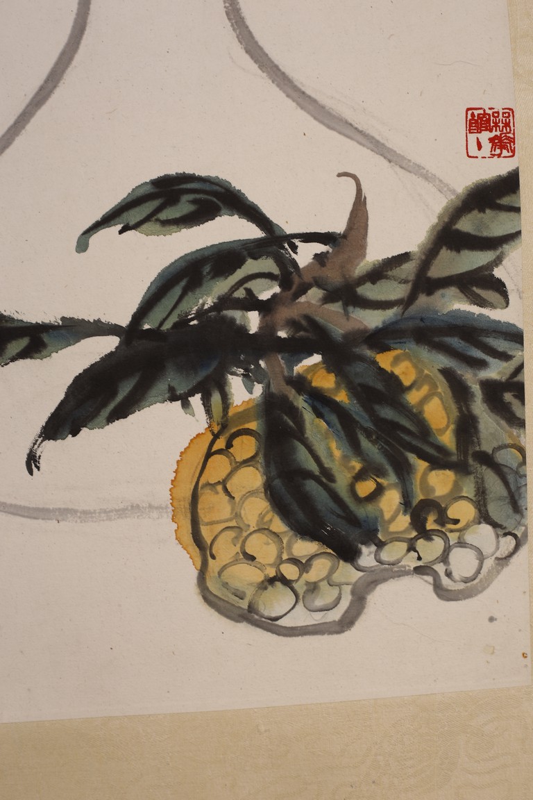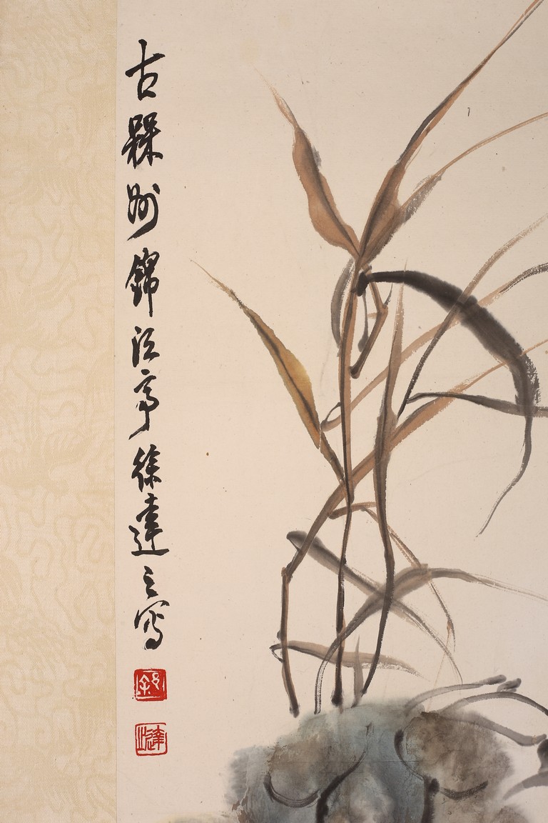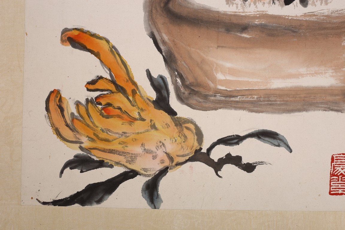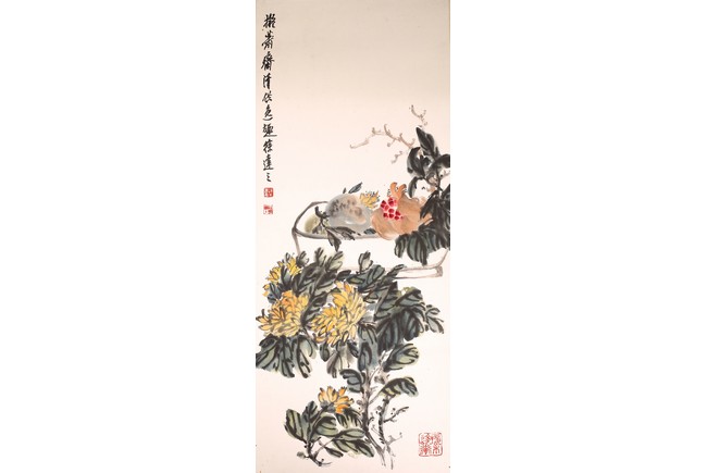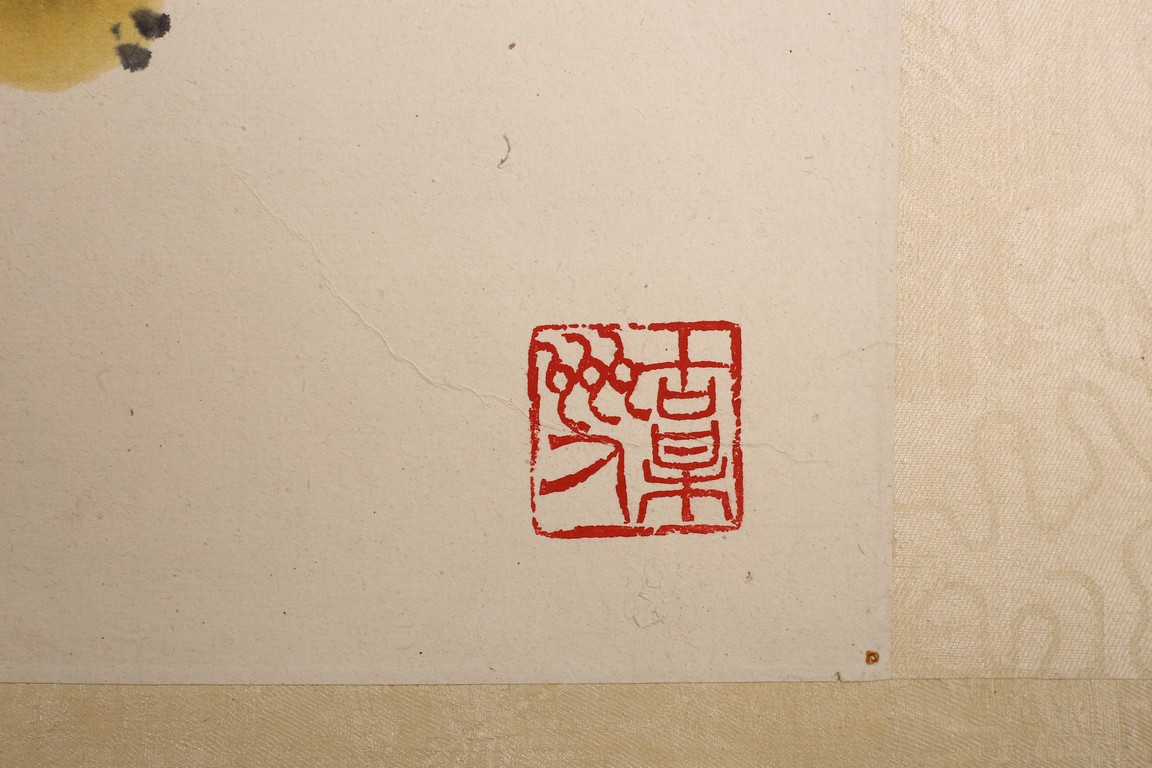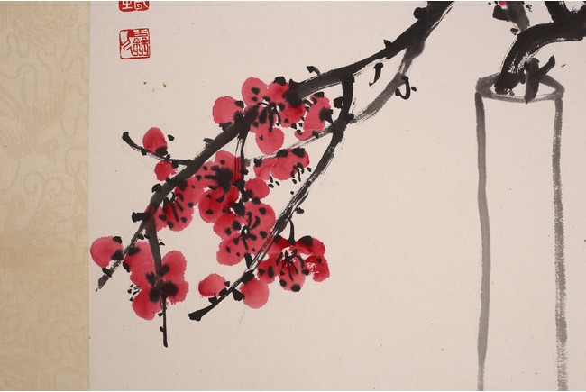 Set of six color and ink on paper paintings. Unframed. Flowers and birds. Each inscribed and signed Xu Dazhi, with three seal marks, dedicated to Shi An Xian Sheng.