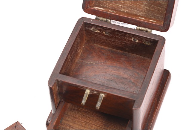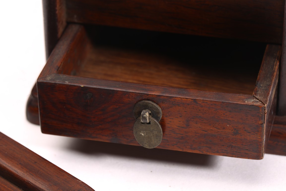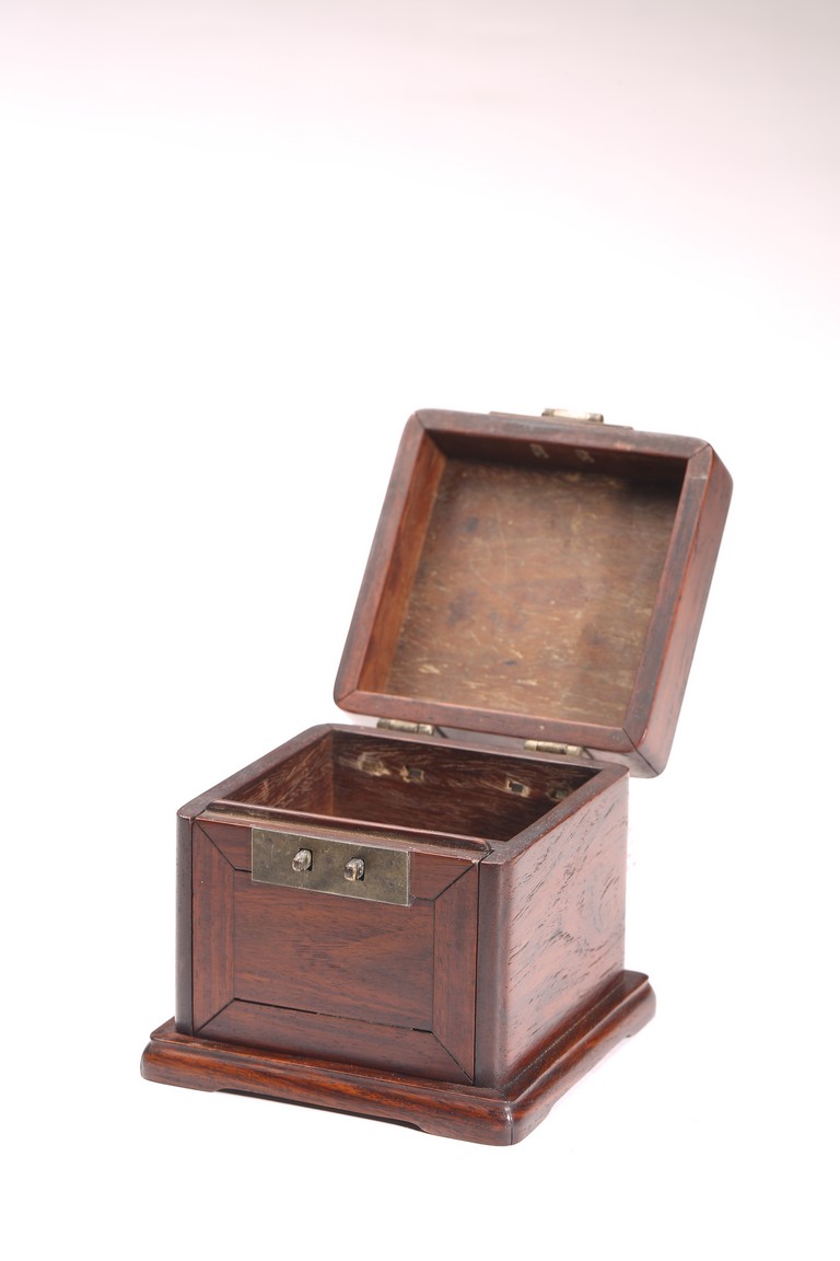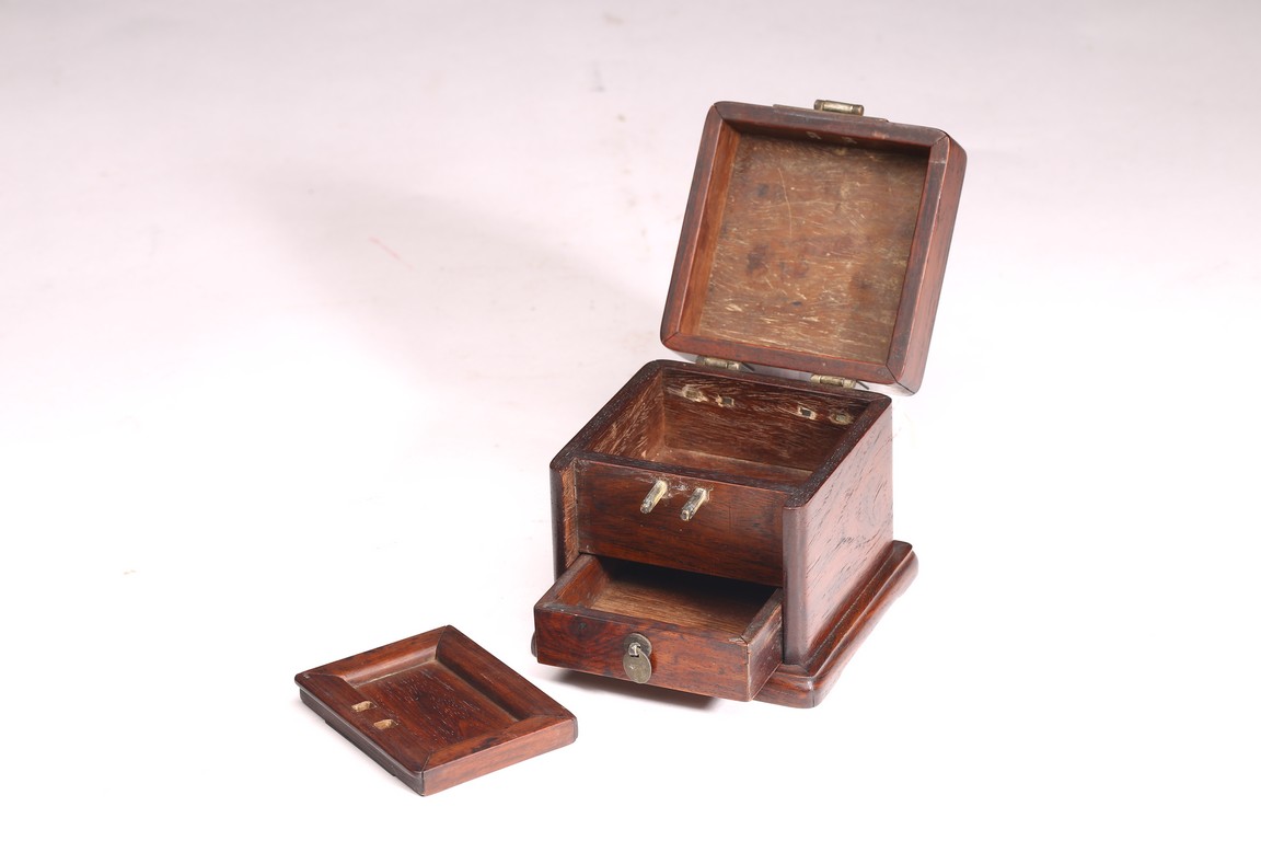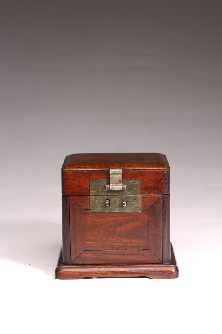 Qing Dynasty period. The box and cover similarly constructed with straight sides, the front with square two-part lockplate, the interior housing a removable tray.