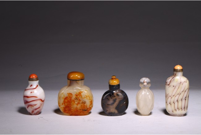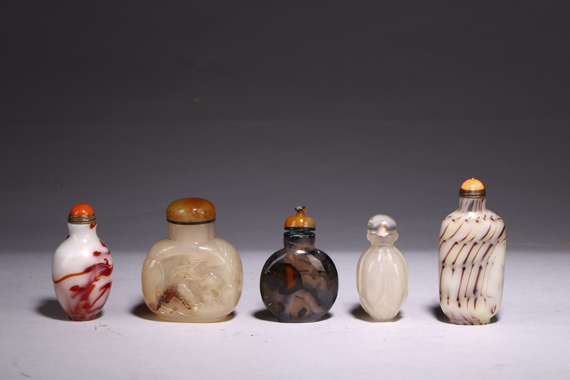 A GROUP OF FIVE SNUFF BOTTLES 各式鼻煙壺一組五件