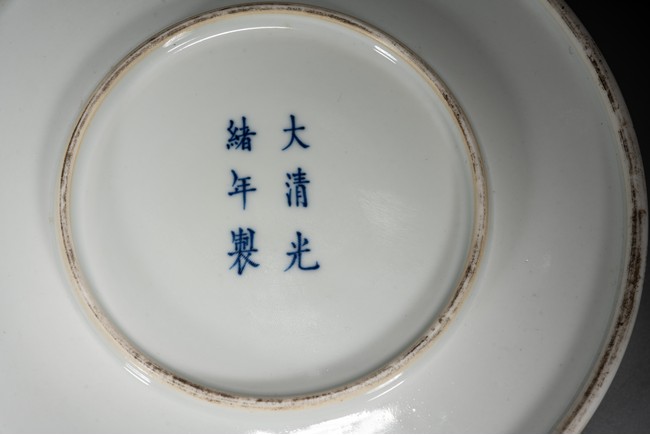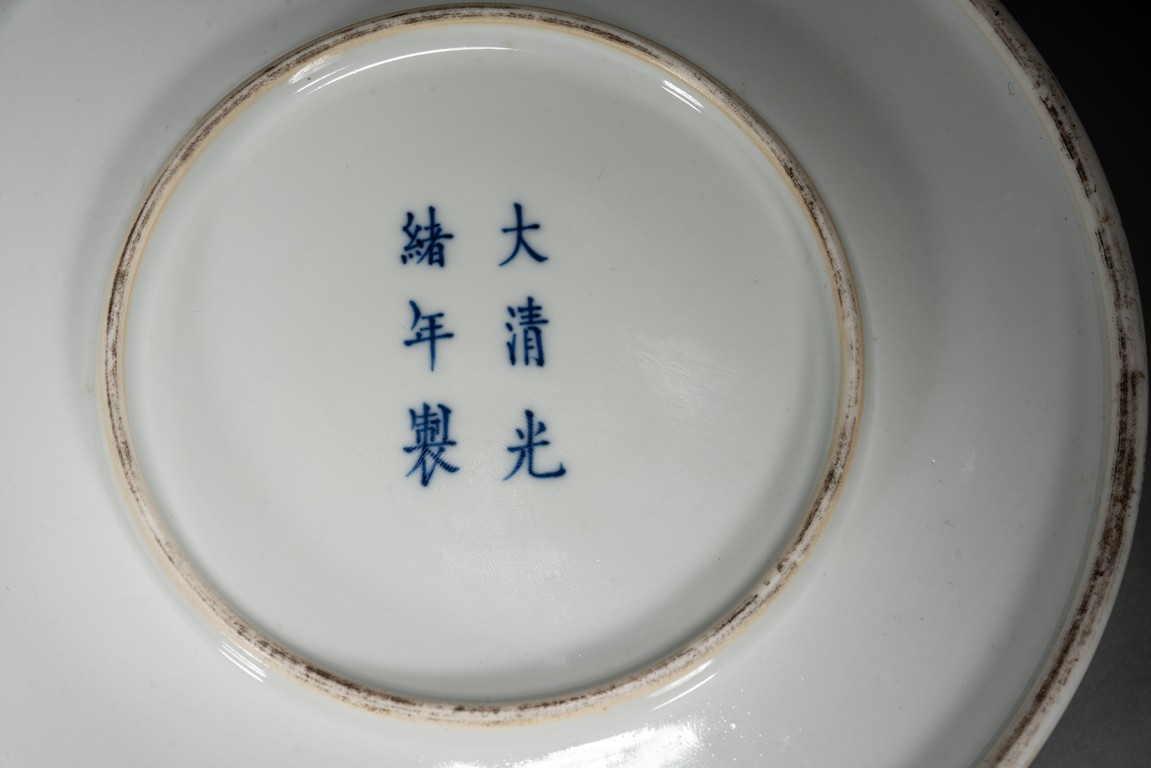 Qing Dynasty period. The donut-shaped box and cover finely decorated to the exterior with meandering floral scrolls, the base inscribed with six character Guang Xu mark.