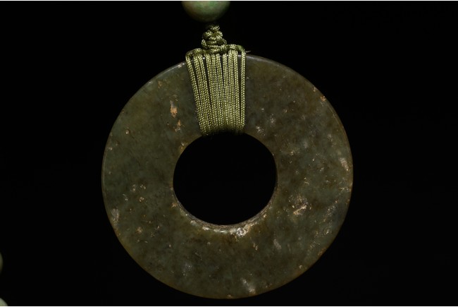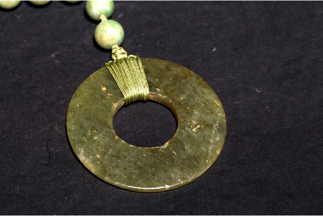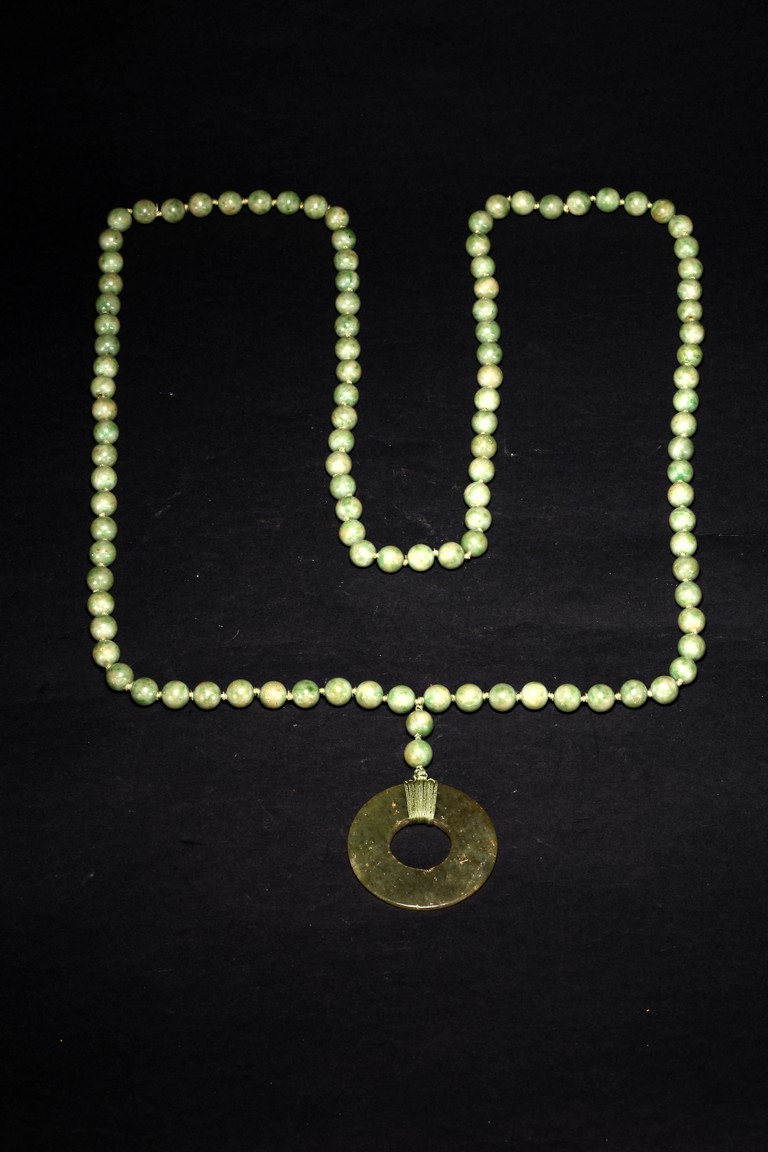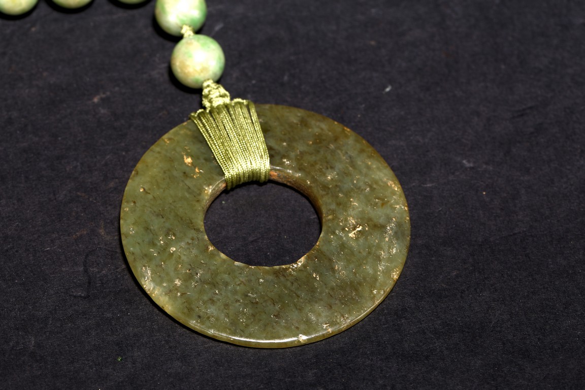 A 108 HARDSTONE BEADS WITH A JADE DISC BI 翠玉佛珠108粒配漢代玉璧