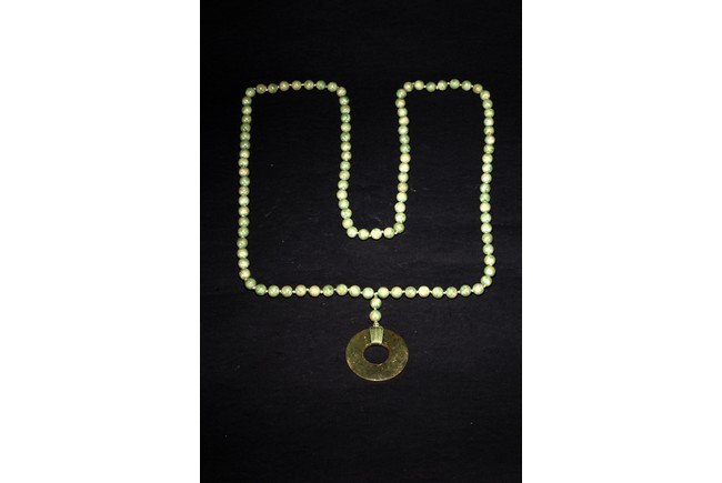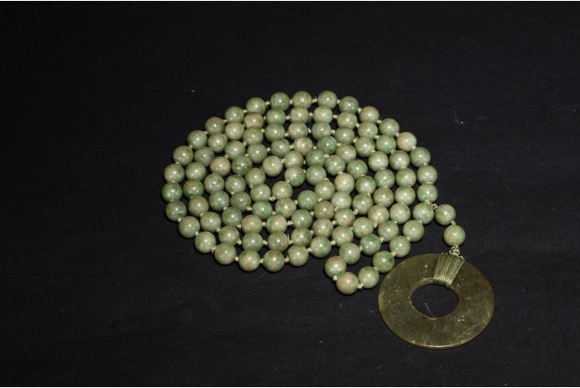 Comprising of 108 hardstone beads stringed with a green jade disc bi.