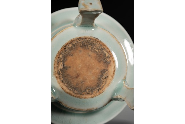 杯為直口,直腹,下承高足式把柄。瓶直口,束頸,鼓腹,矮圈足。爐直口,直腹,三獸足。瓷質極薄,釉細白而青,釉面光潔平滑,溫潤如玉,光照見影,有如冰肌玉膚。底足不施釉,足心可見墊燒痕跡,底足的墊餅燒痕有微帶黑的土黃色。整體造型端莊古樸,紋飾刻劃細膩,釉質清透,晶瑩奪目。