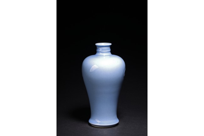 A CHINESE SKY BLUE GLAZED VASE 清 天藍釉瓶