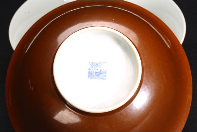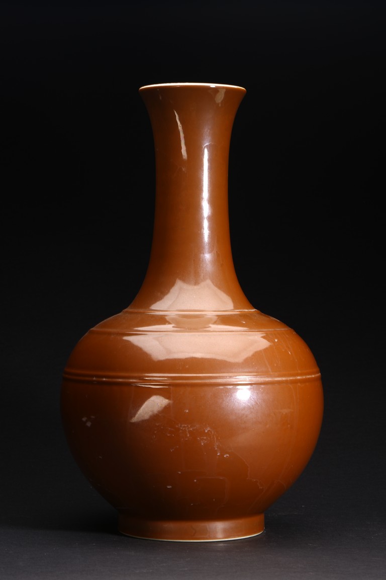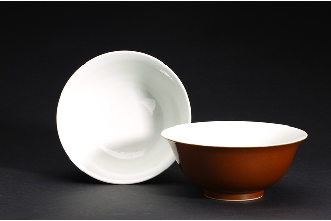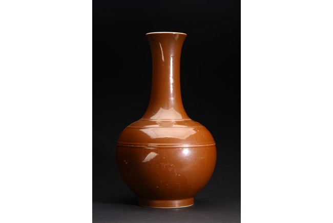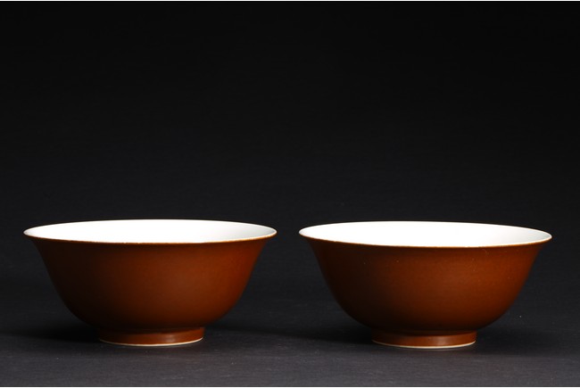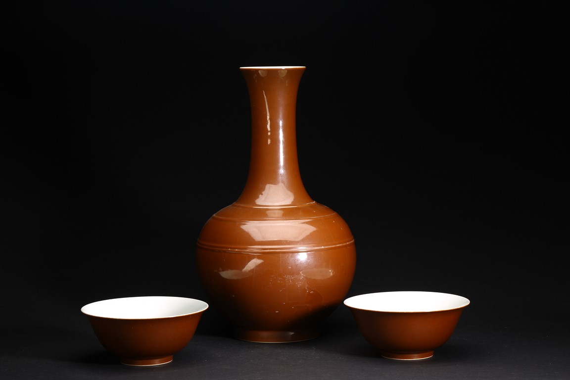 Qing Dynasty period. A group of three brown glazed vase and bowl pair