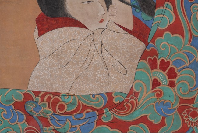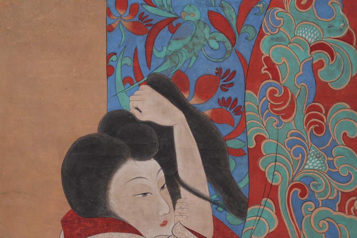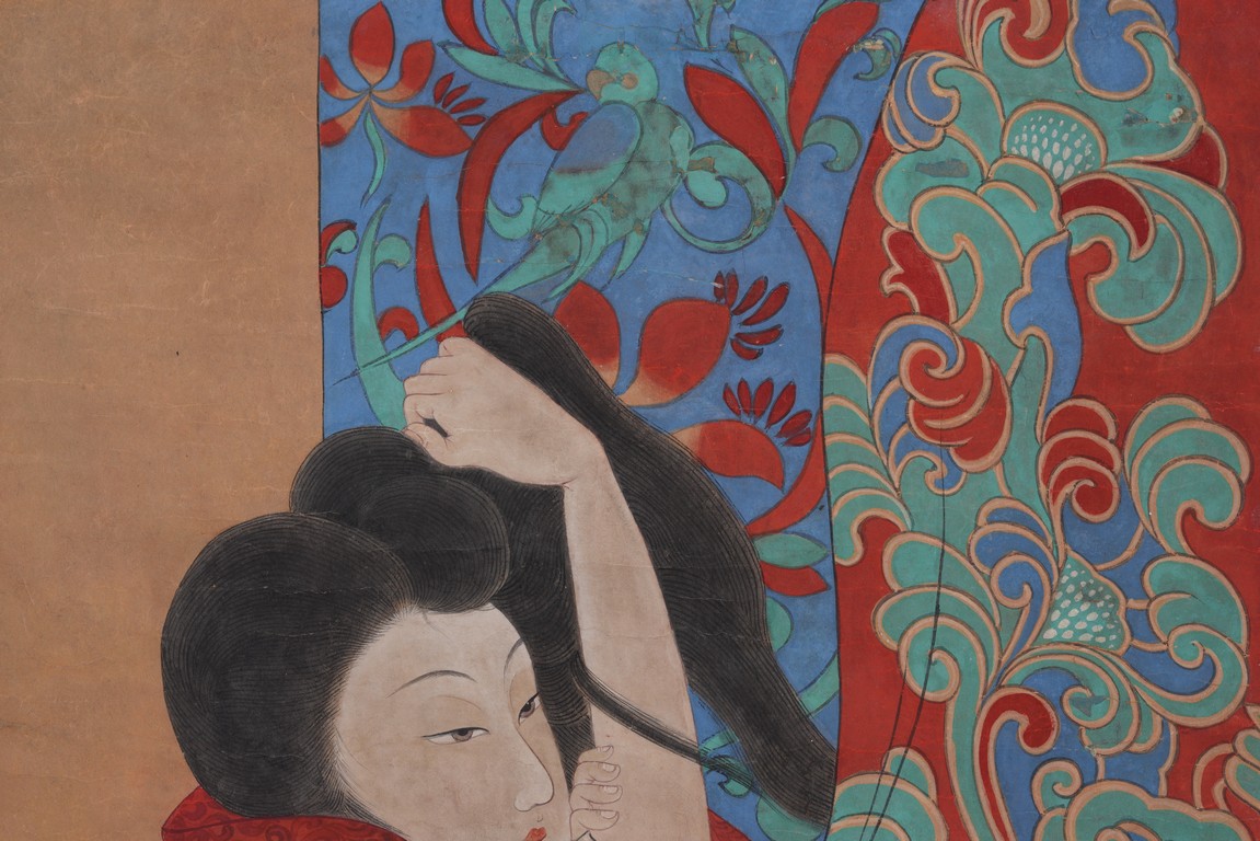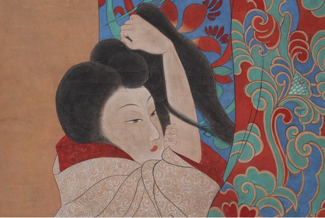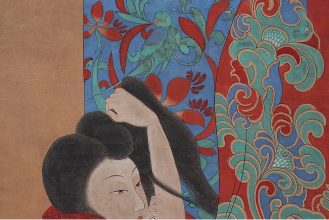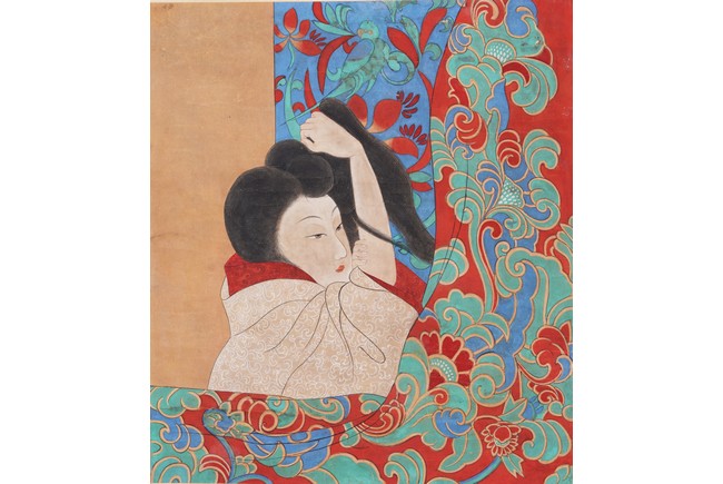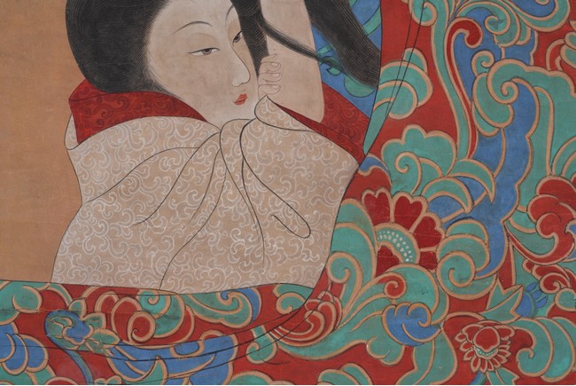 Chinese. Color and ink on paper. Hanging scroll. Beauty. Possibly by Zhang Daqian. Anonymous.