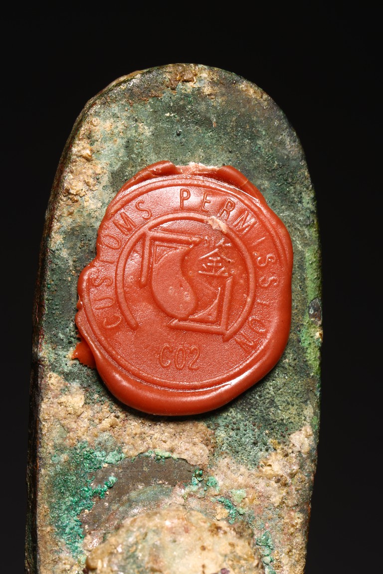 此件拍品2005年曾由洛杉磯教授藏家親自帶到北京並讓青銅專家賈文忠先生鑒定,斷定為戰國時期青銅帶勾中的精品,值得收藏。來源: 洛杉磯教授藏家收藏,2000年初購於意大利羅馬古董市場 Provenance: Property from a professor's collection, Los Angeles. Acquired from antique market in Rome, Italy in the early 2000s.
