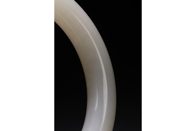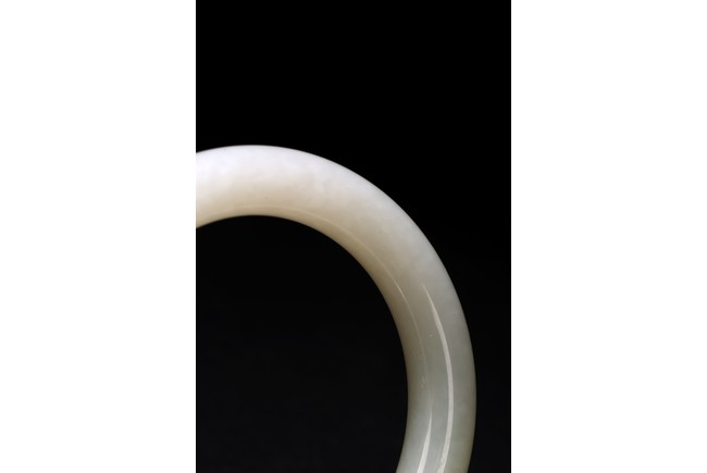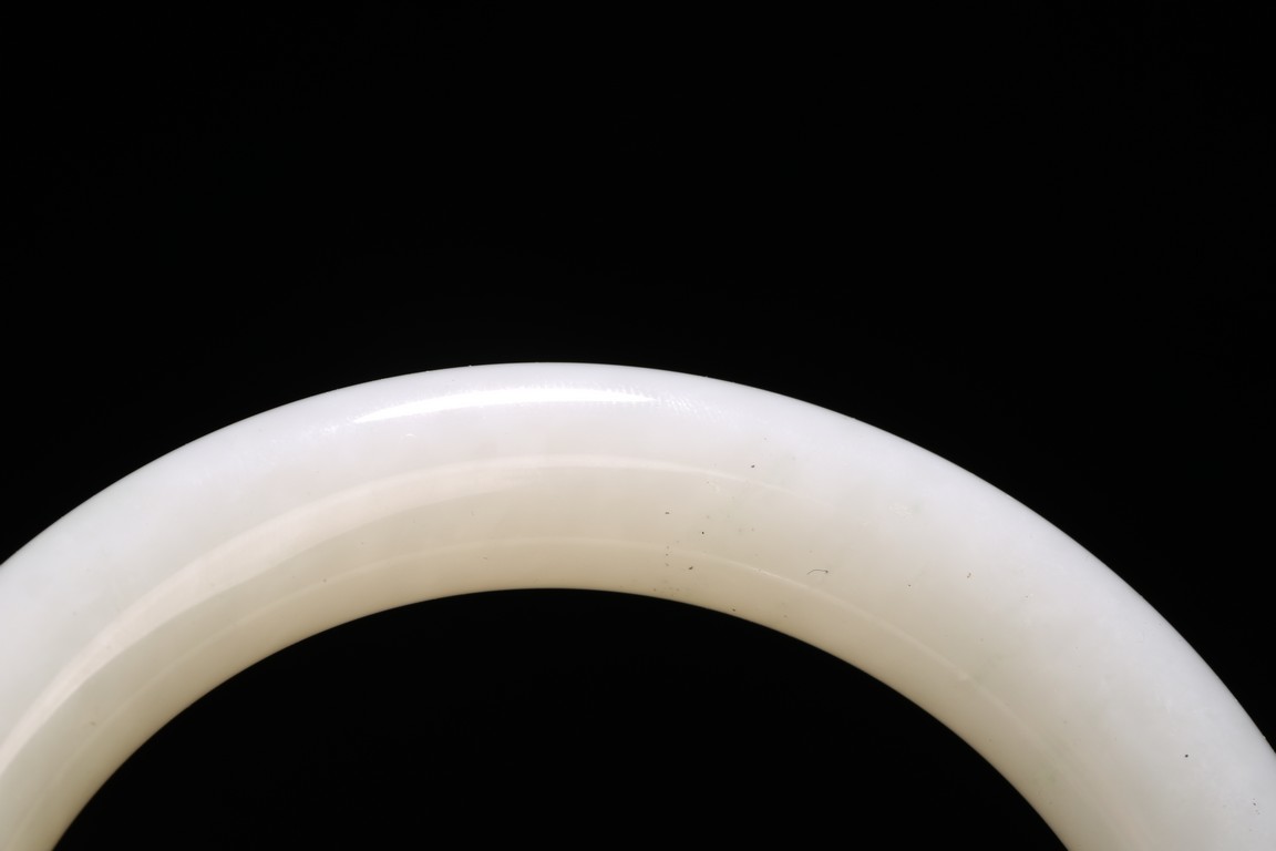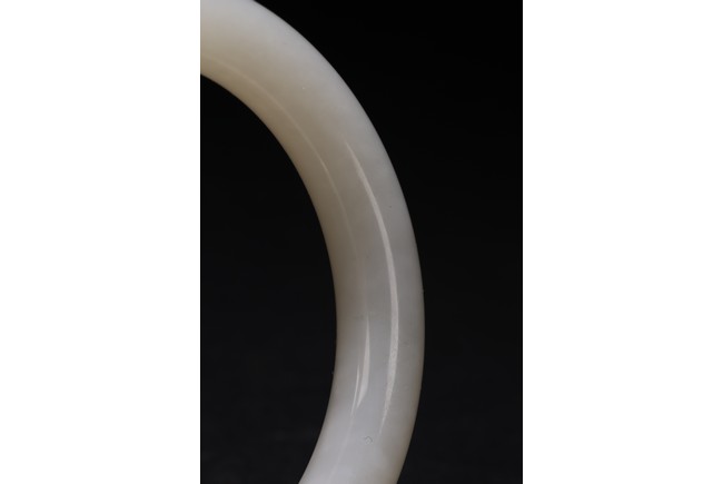 A PAIR OF CHINESE WHITE JADE BANGLES    清 白玉手鐲一對