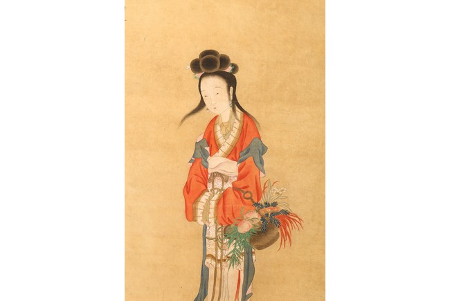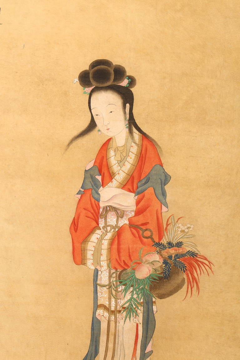 A COLOR AND INK ON SILK LADY PAINTING 設色絹本 麻姑獻壽圖