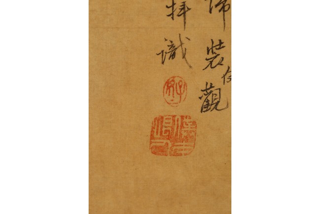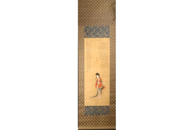 Color and ink on silk. Lady. Hanging scroll. Inscribed and signed, with one seal of the artist.