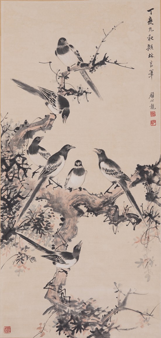 落款:丁亥九秋凝林良筆鈐印:長白布衣顏雲霖印伯龍顏伯龍(1898~1955)滿族,正黃旗,北京人。民國時期京津畫派著名的花鳥畫家。