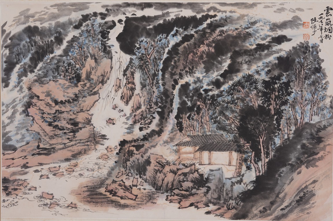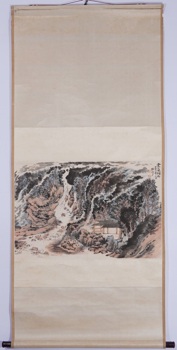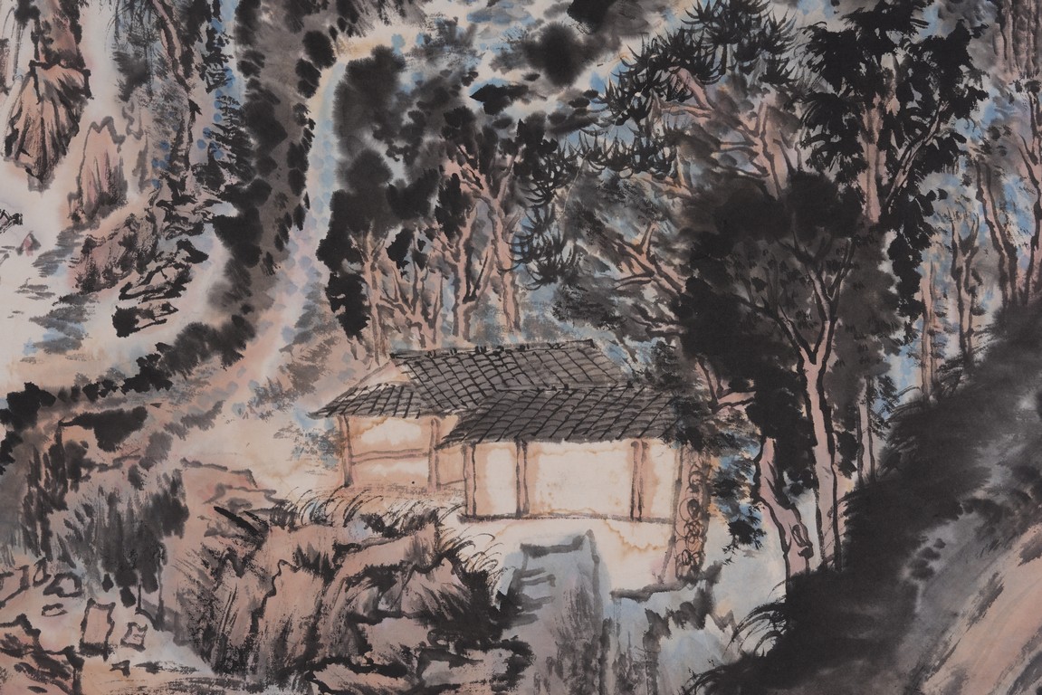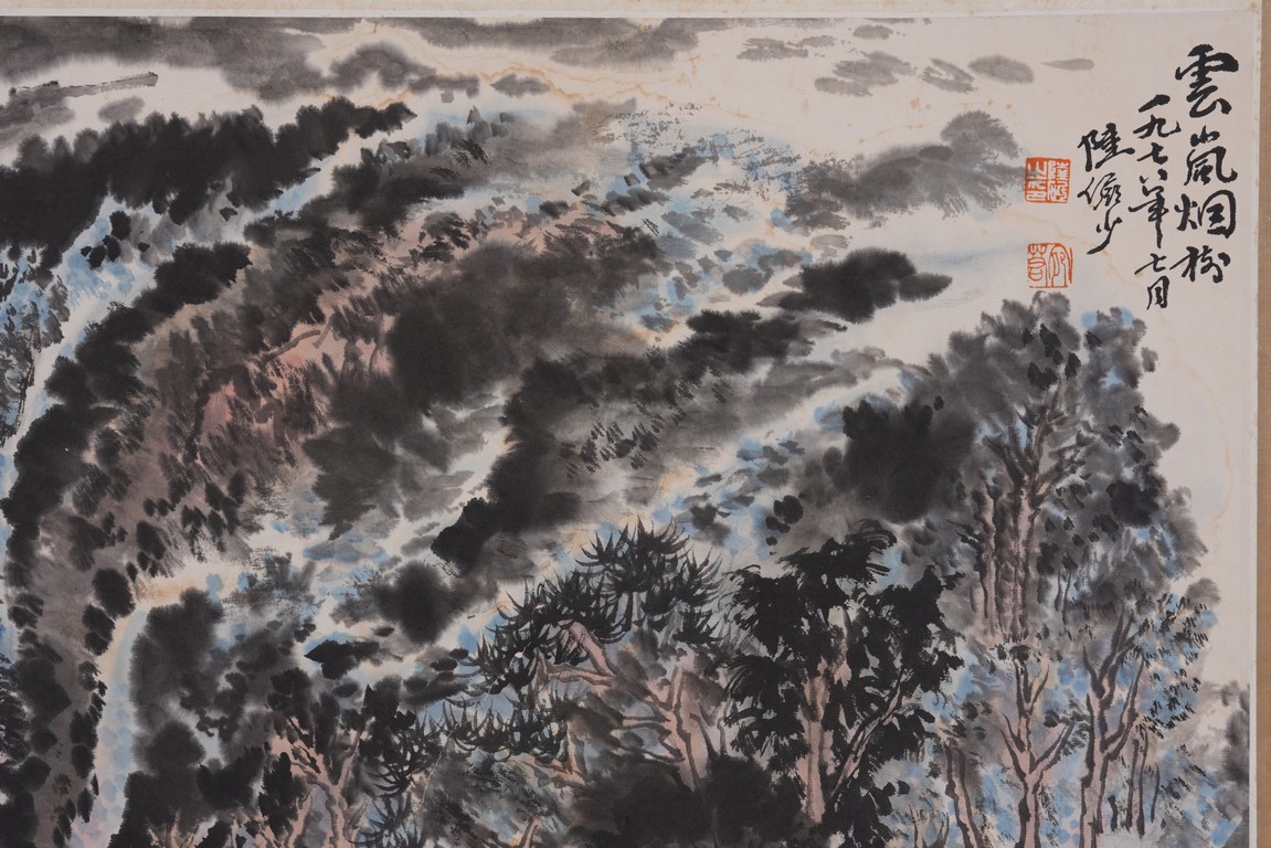 Color and ink on paper. Landscape. Hanging scroll. Signed Lu Yanshao, with two seal marks of the artist and dated to July of 1978.