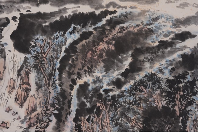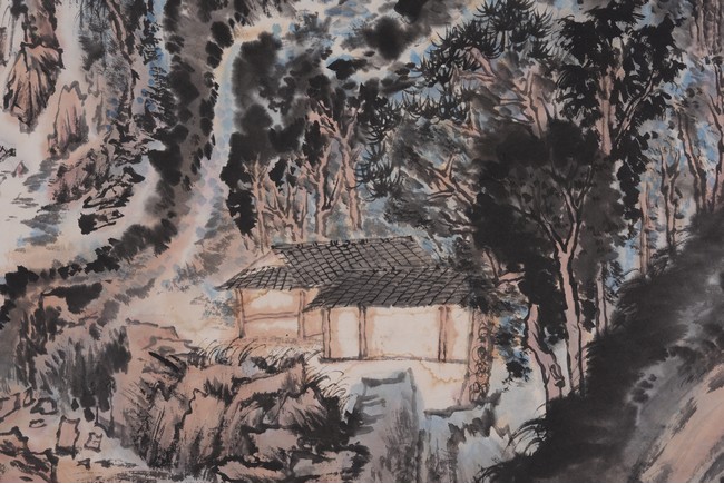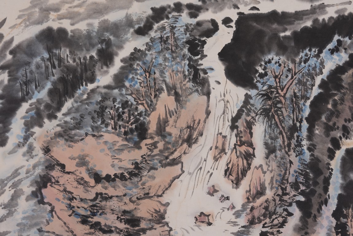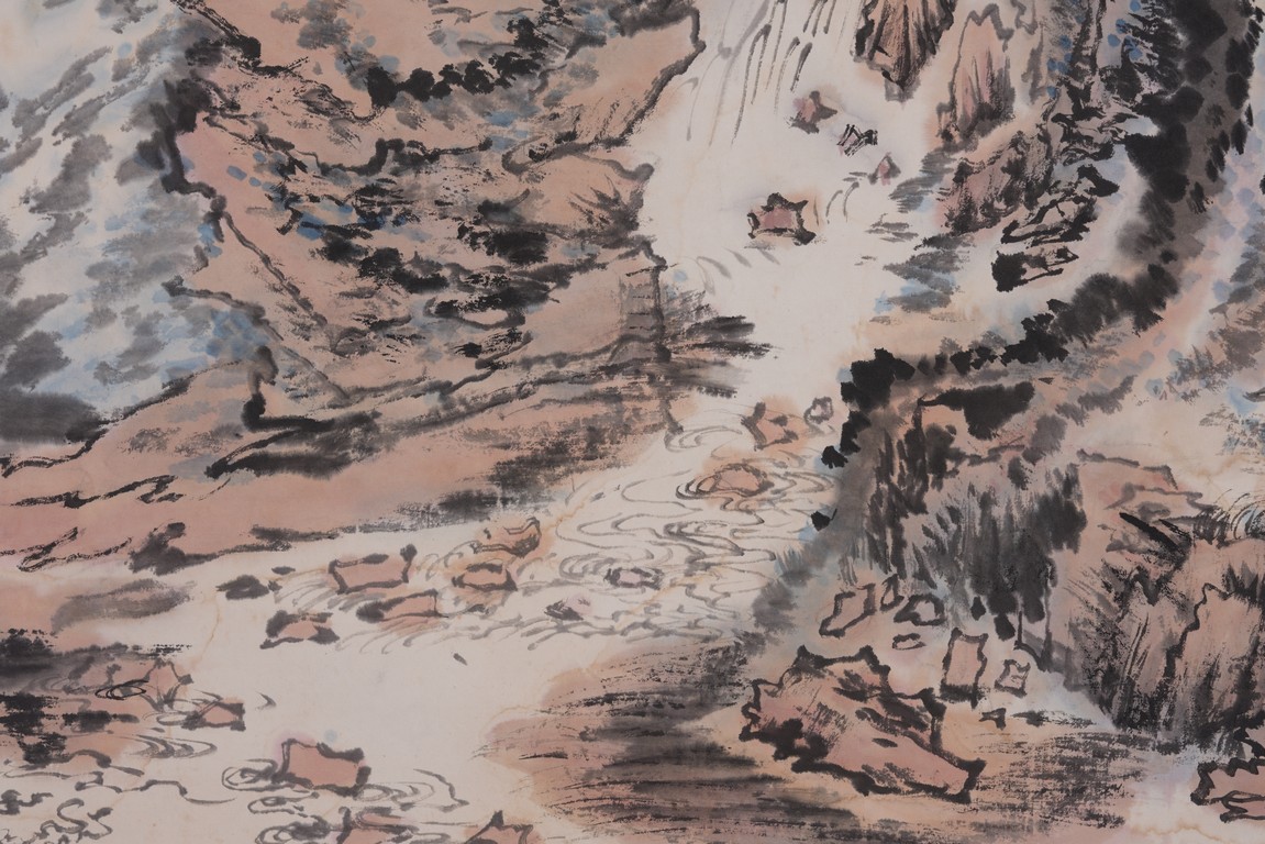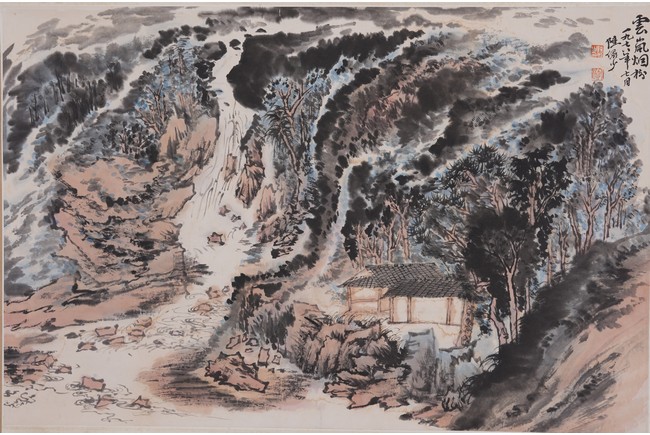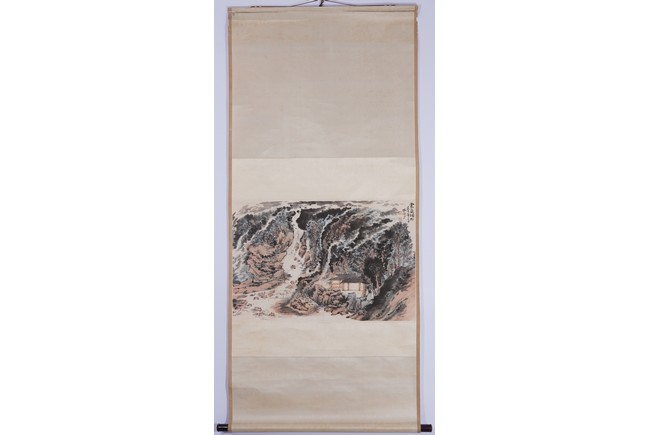 Color and ink on paper. Landscape. Hanging scroll. Signed Lu Yanshao, with two seal marks of the artist and dated to July of 1978.