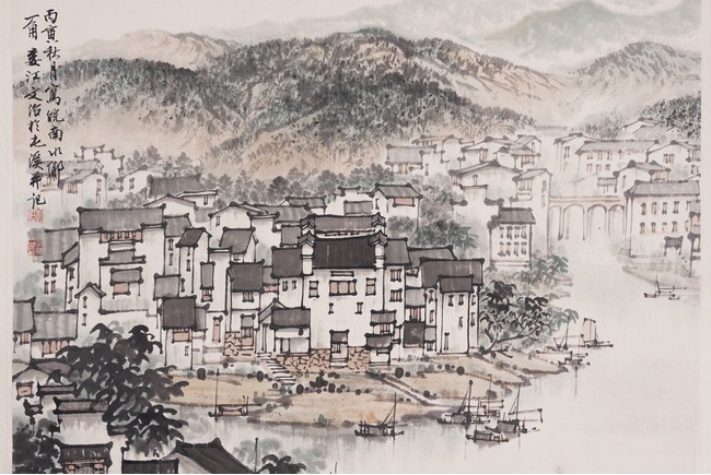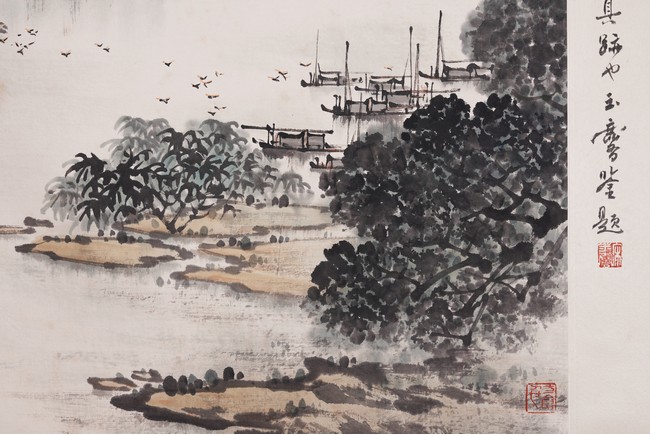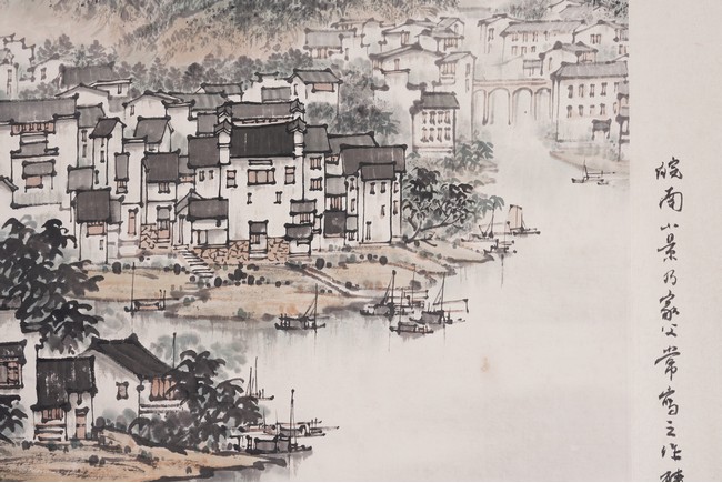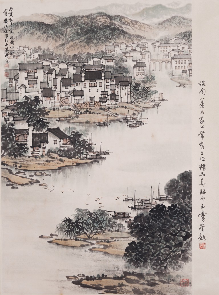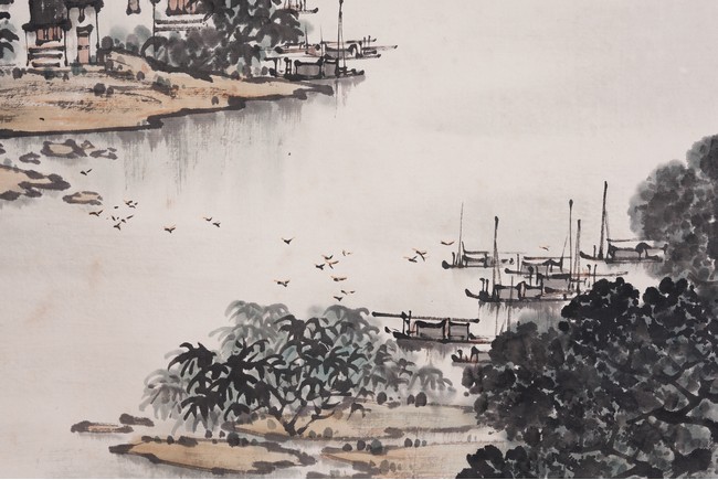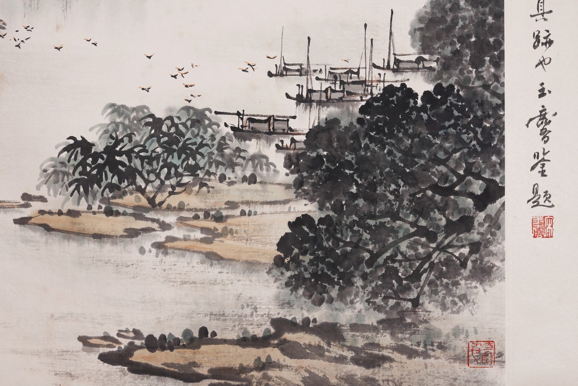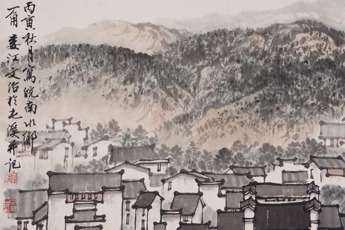 出版: 《現代江蘇畫派名家 宋文治》人民美術出版社 第62號 。落款:婁江文治鈐印:文治宋灝之印附出版第62 頁宋文治:現代畫家。江蘇太倉人。早年從張石園學習山水,後得陸儼少指授並拜吳湖帆為師。1951 年入江蘇省國畫院受傅抱石影響,致力於山水畫創新。曾任南京大學教授、江蘇美協副主席、江蘇省國畫院副院長等職。來源:美國東岸私人藏家收藏 Provenance: Property from an East Coast private collection