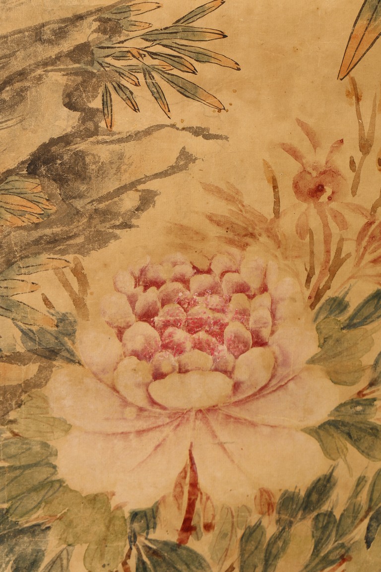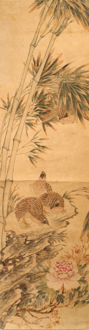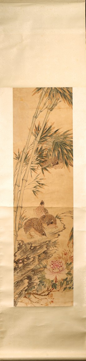 A COLOR AND INK ON PAPER 'BIRDS AND BAMBOO' PAINTING 佚名 竹鳥牡丹 設色紙本 立軸
