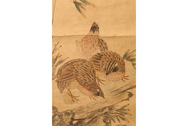 Color and ink on paper. Bird and bamboo. Anonymous. Hanging scroll.
