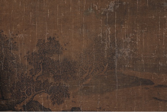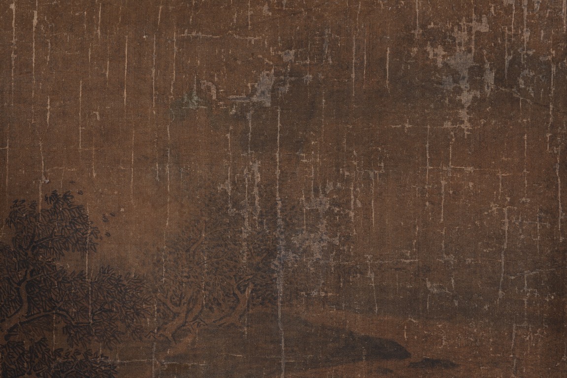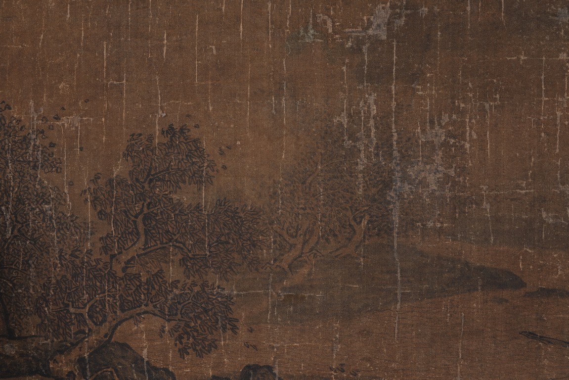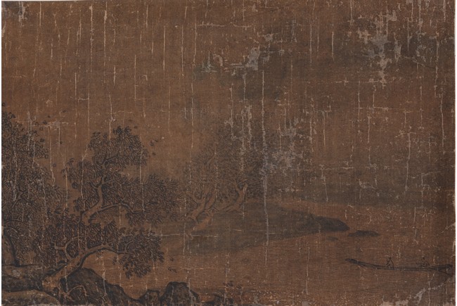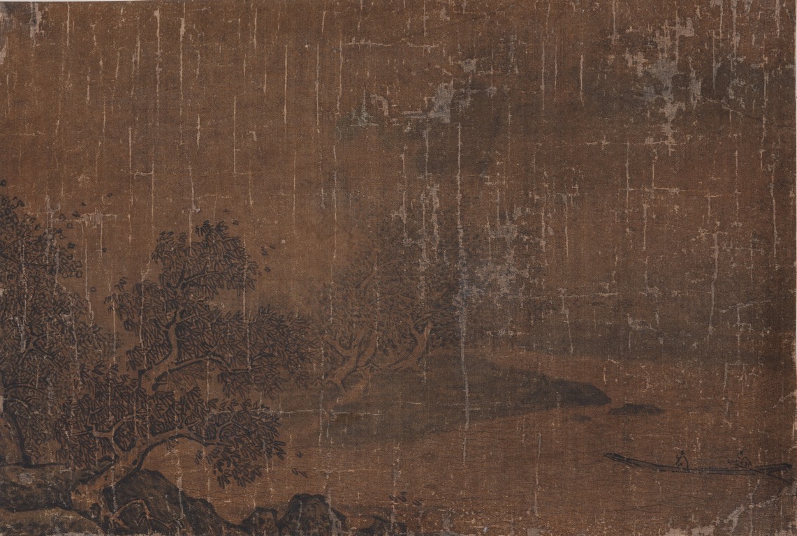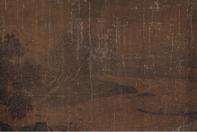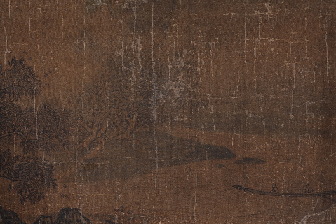 Chinese. Song/Yuan Dynasty. Ink on silk 'riverscape' painting. Hanging scroll. Anonymous.