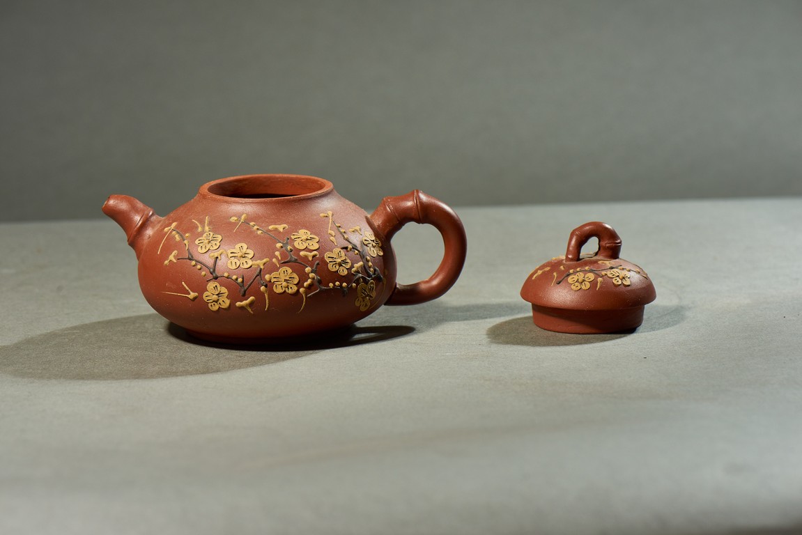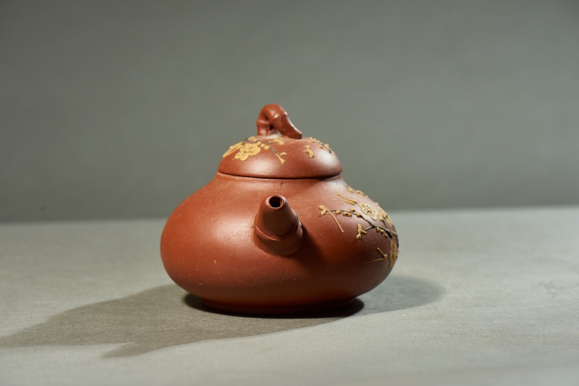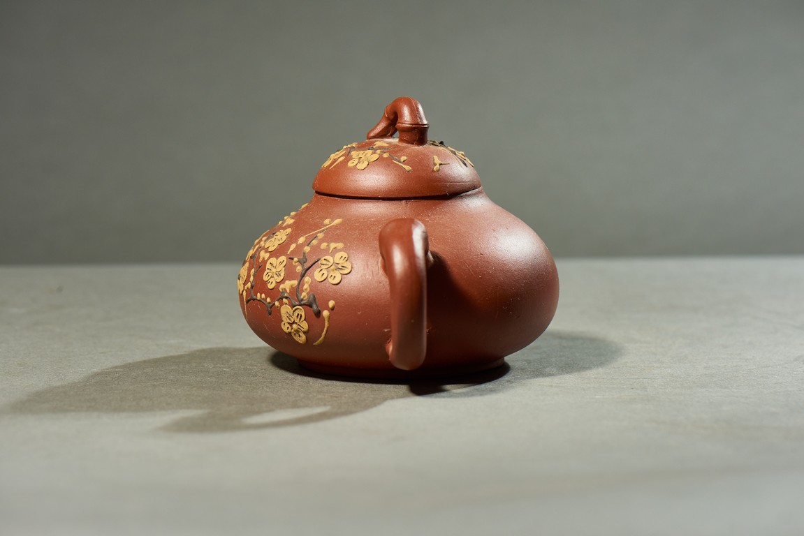 A YIXING 'PRUNUS BLOSSOM' TEAPOT 民國 梅花紋紫砂壺