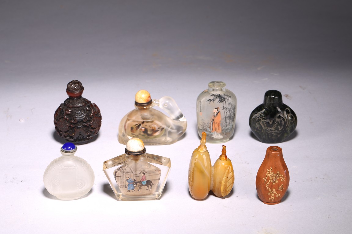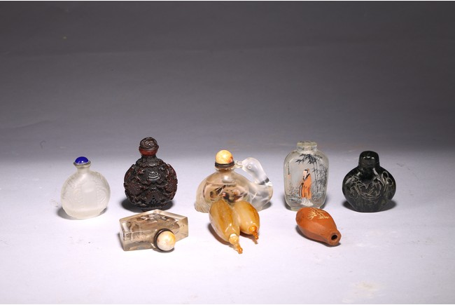 A GROUP OF EIGHT SNUFF BOTTLES 各式鼻煙壺一組八件
