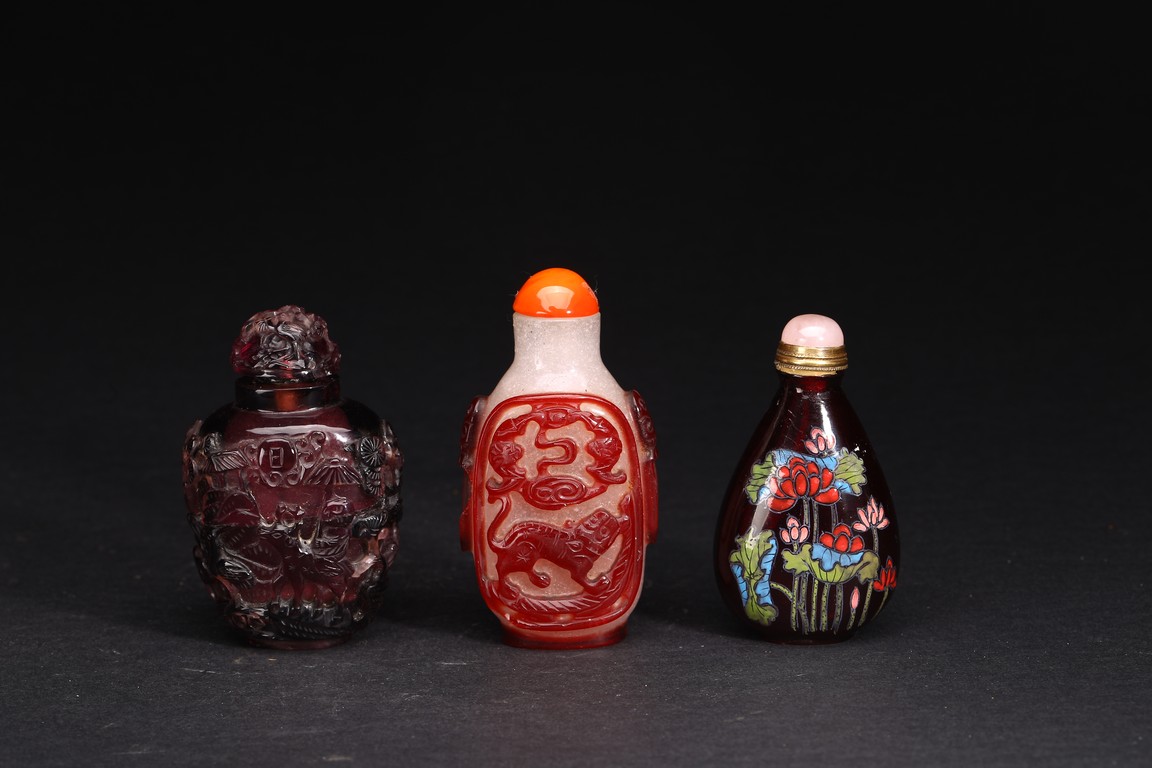 A GROUP OF THREE SNUFF BOTTLES 各式鼻煙壺一組三件