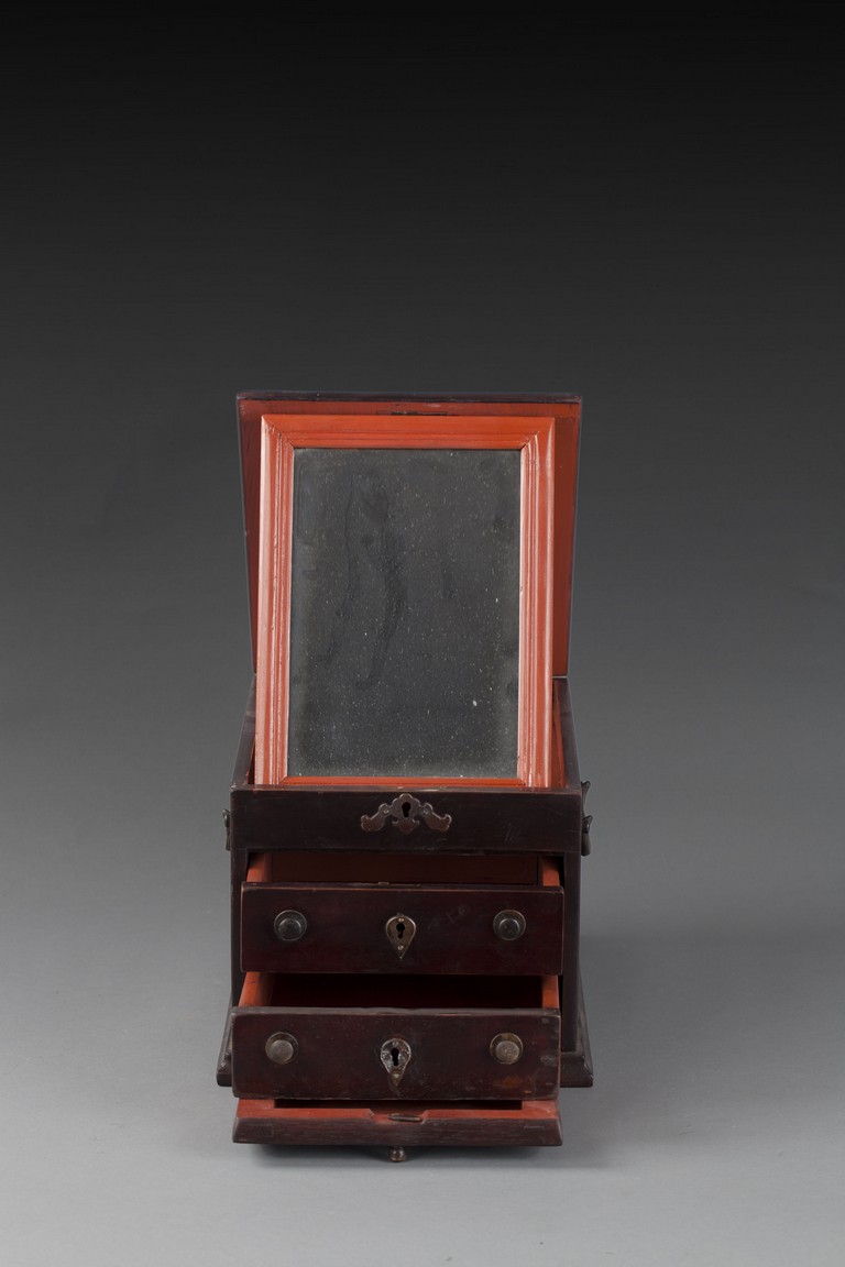 Republic period. A finely made hardwood box with two drawers and a rectangular mirror inside.
