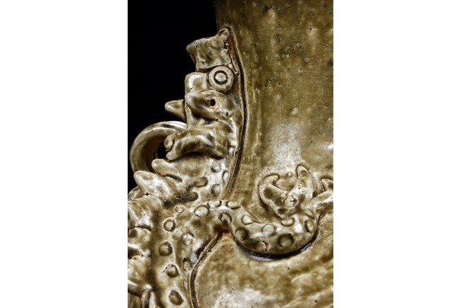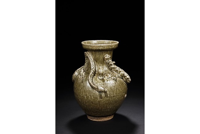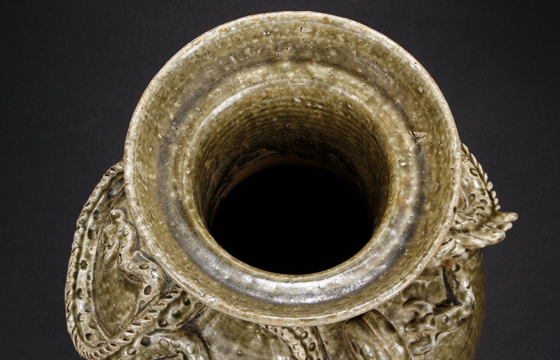A YUE WARE CELADON 'DRAGON' VASE    越窯青瓷盤龍瓶