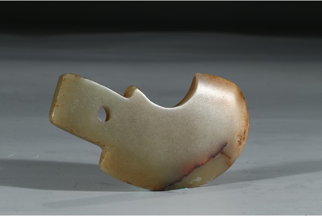 此斧以青玉為材,細膩潤澤,底部略有黃沁。通體光素無紋,造型簡潔明朗,切磨平整。