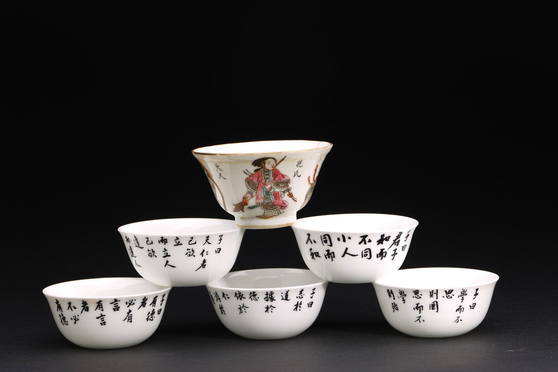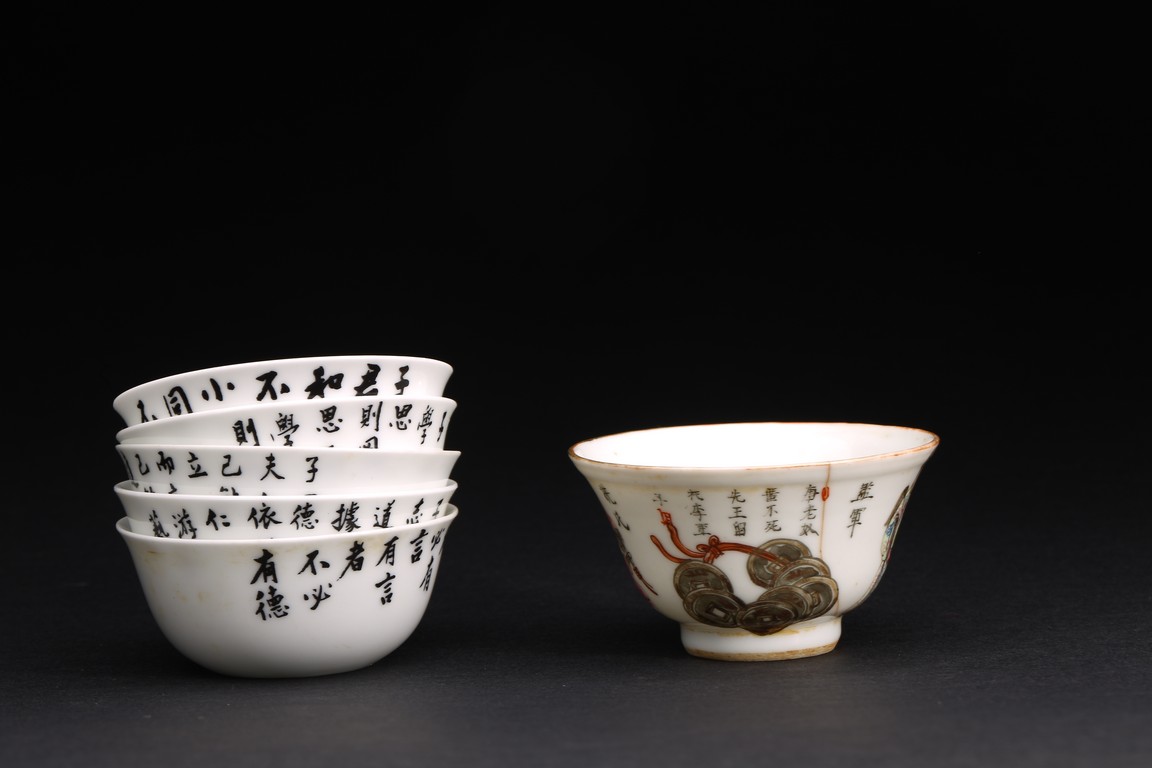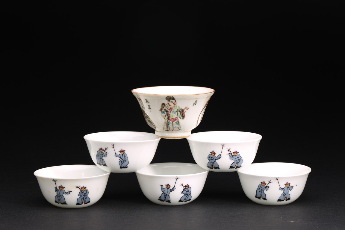 A GROUP OF SIX PORCELAIN CUPS 民/清 小瓷杯一套六件