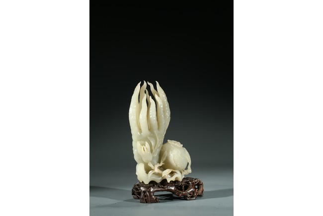此器以和闐白玉為材採用圓雕、透雕工藝精琢而成。玉質潔淨細膩,溫潤油亮。造型美觀,雕工精湛,整體雕佛手、壽桃、石榴紋,構圖協調,飽滿大氣,為傳統的“多福多壽多子”的三多題材,寓意吉祥。材質上乘,用料碩大,工料俱佳。 圖:《故宮經典清宮生活圖典》