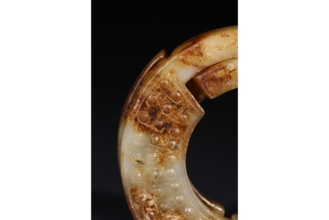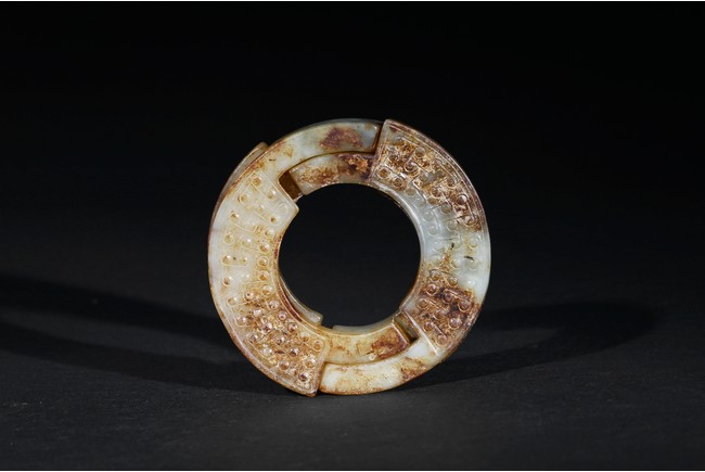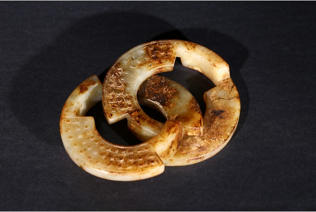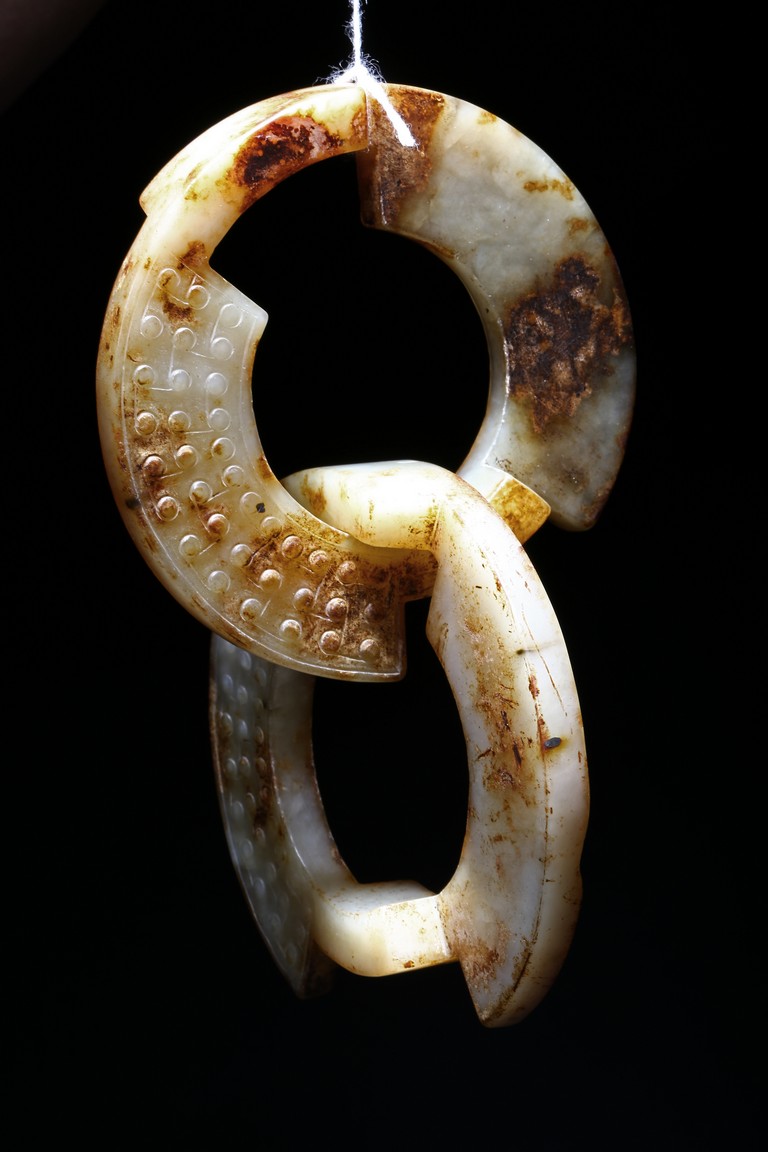 Carved in the form of two interlocked rings with archaistic pattern. Ming Dynasty period.