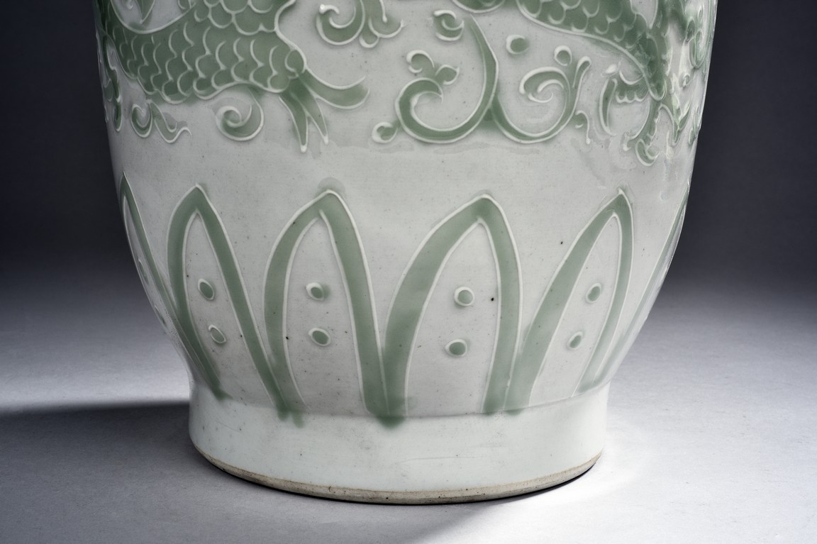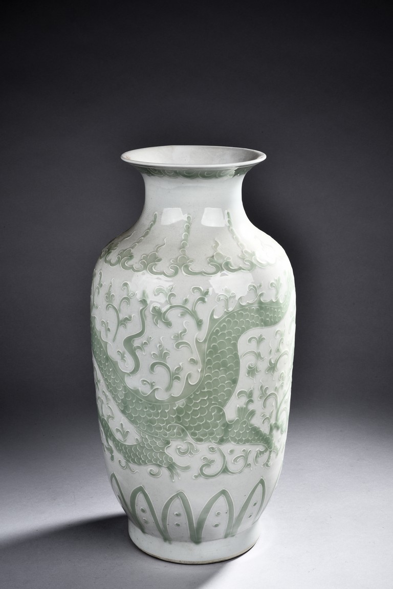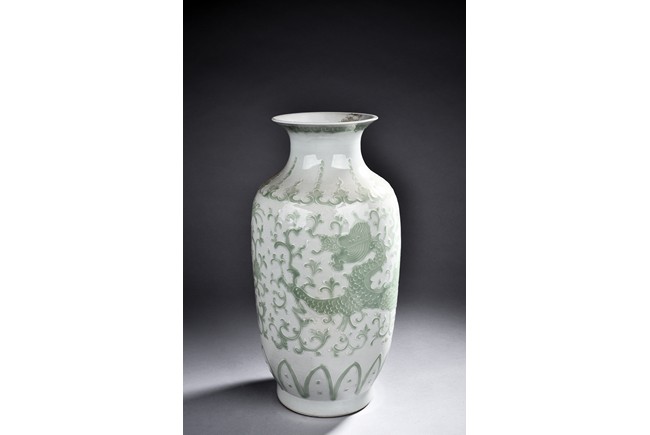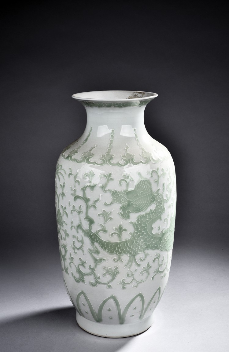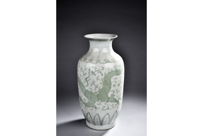 A GREEN GLAZED WHITE GROUND VASE 白底綠釉花瓶