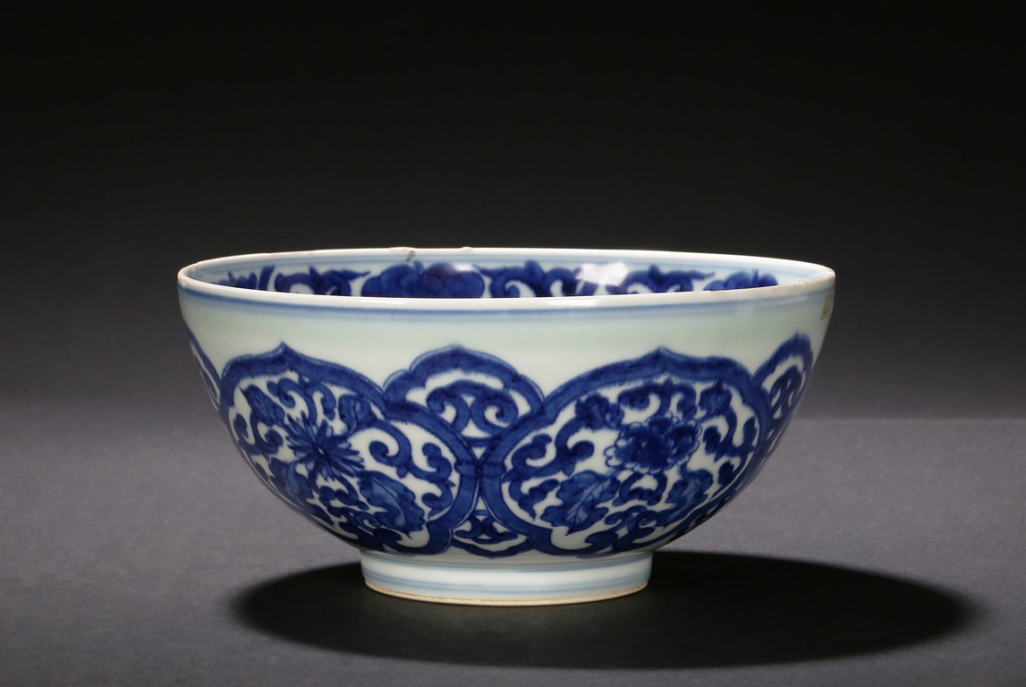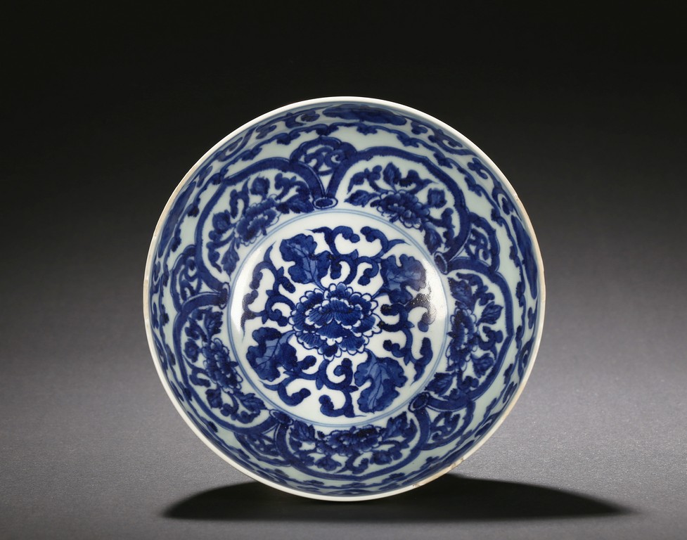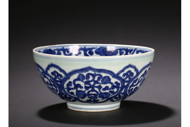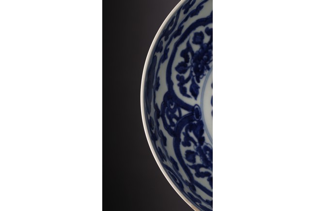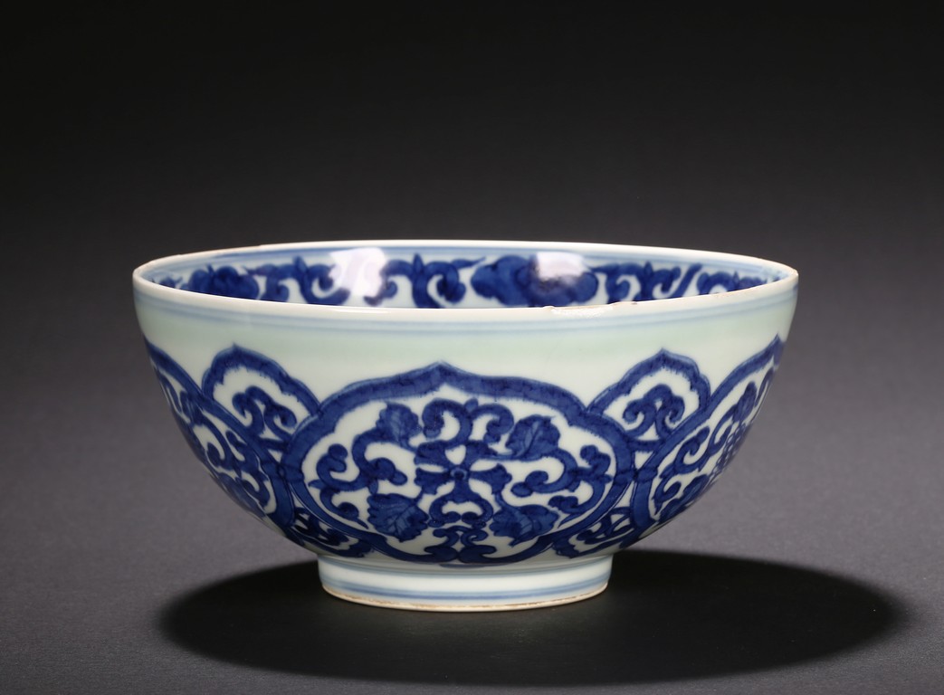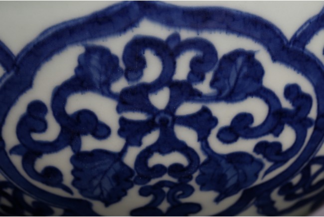 The exterior decorated with leafy scrolled floral decoration within a shaped ruyi head cartouche, interior further enamelled with similar design, the base with four character mark. Qing Dynasty period.