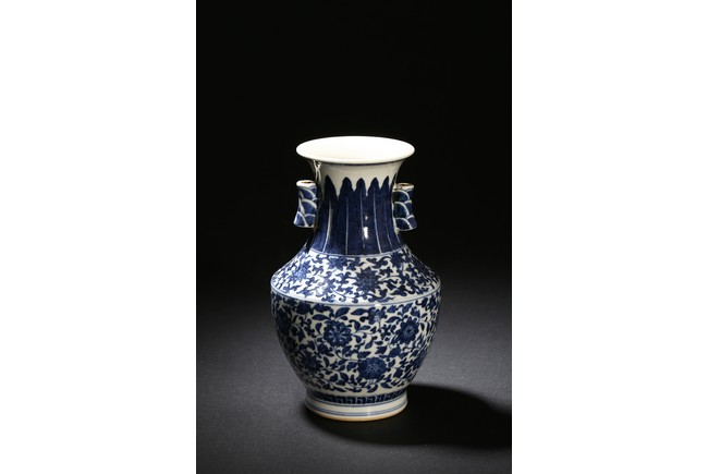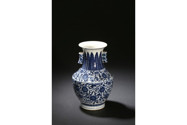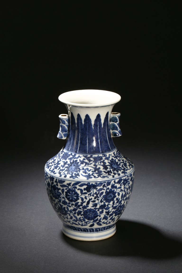 A BLUE AND WHITE VASE 清 青花雙耳瓶