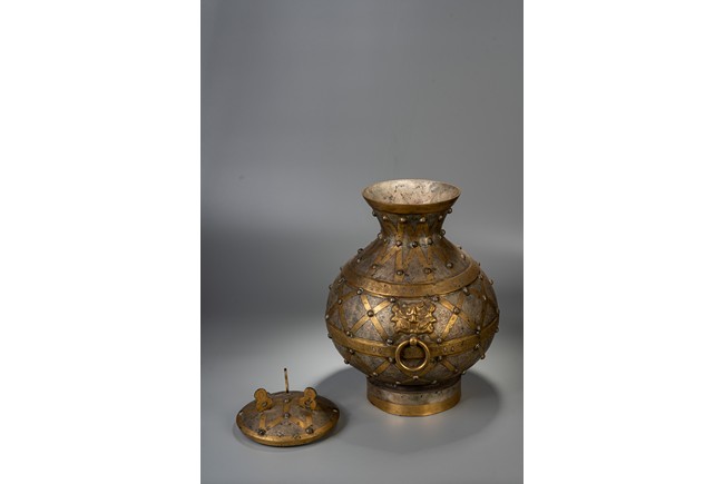 銅制鎏金工藝,料質工俱佳,大氣穩重,端莊典雅,藏之重器。