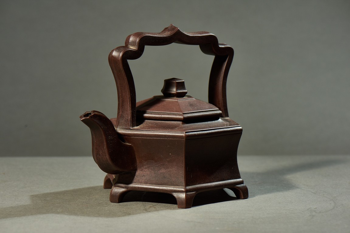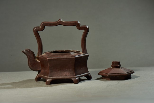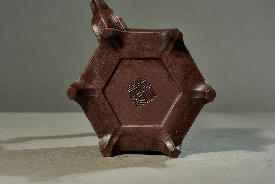 A YIXING HEXAGONAL TEAPOT 宜興六方型紫砂壺