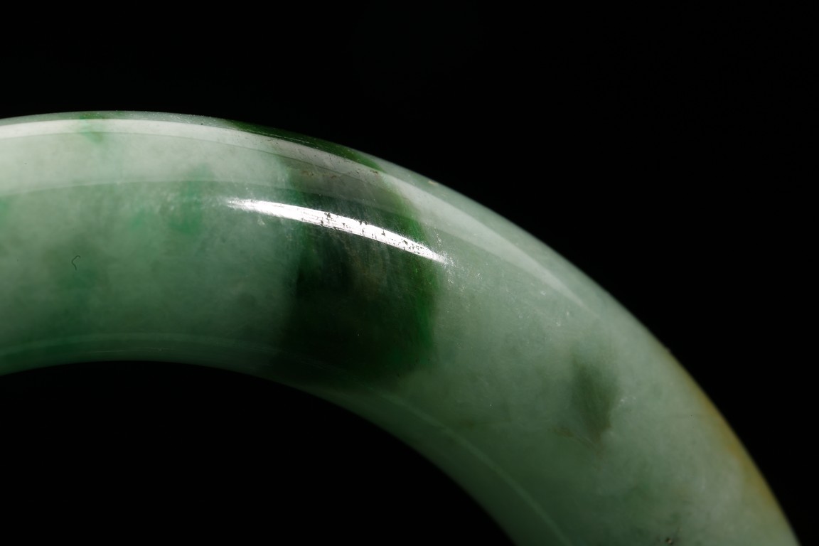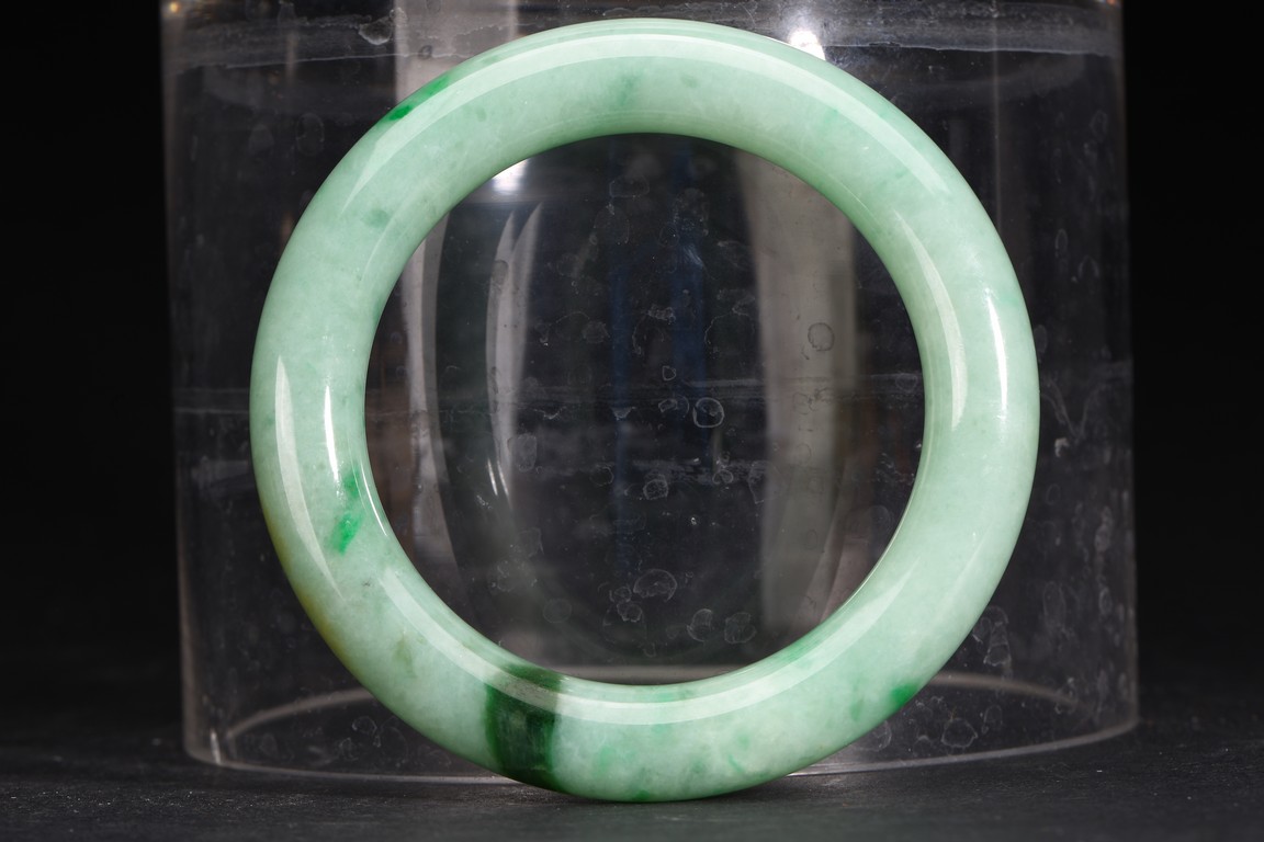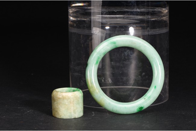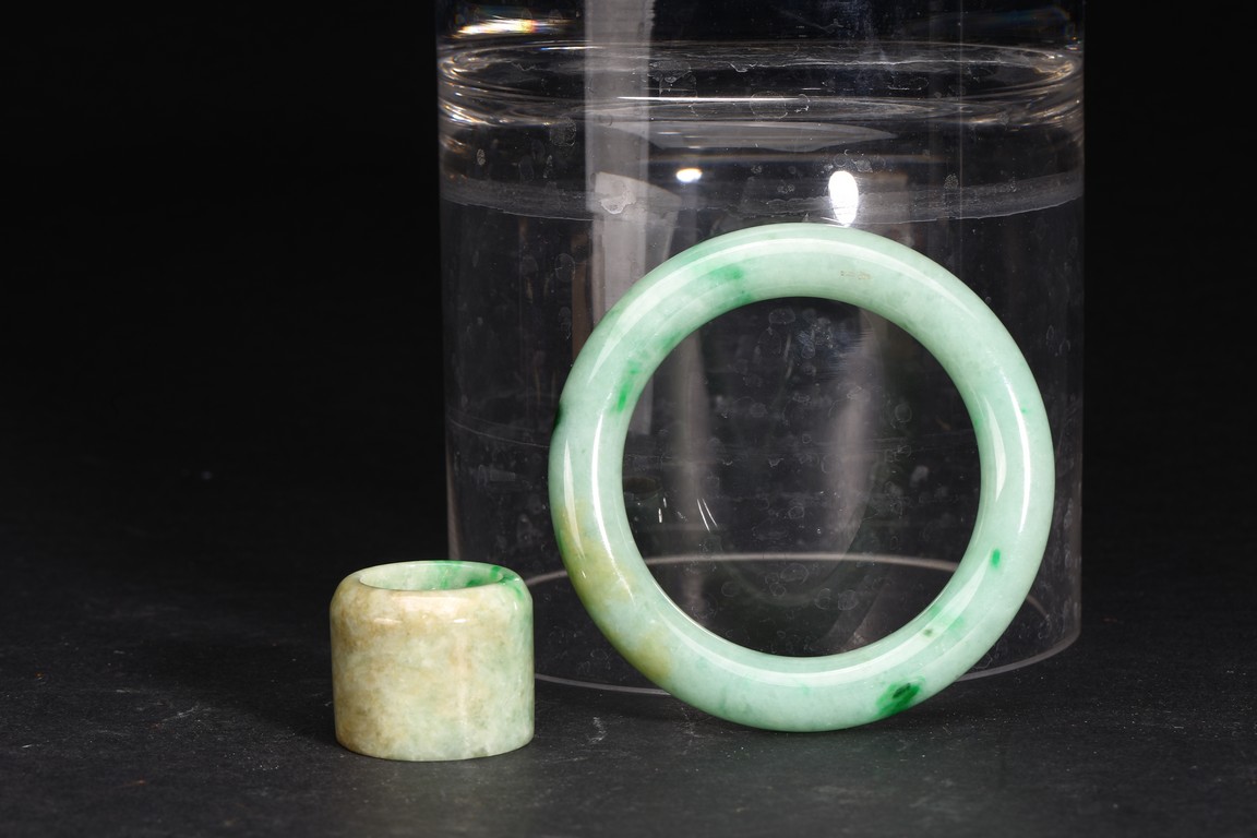 Qing Dynasty period. Consisting of a jadeite archer's ring and a bangle.