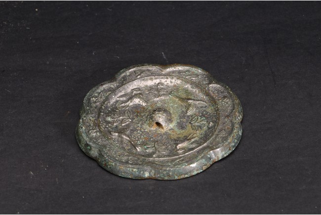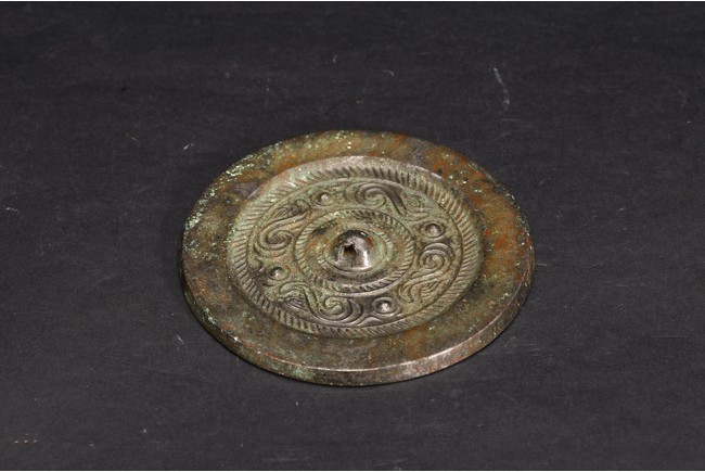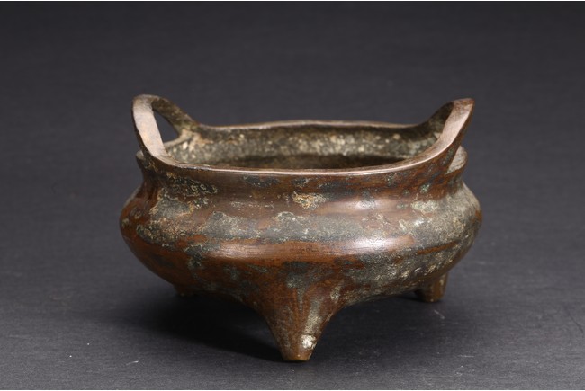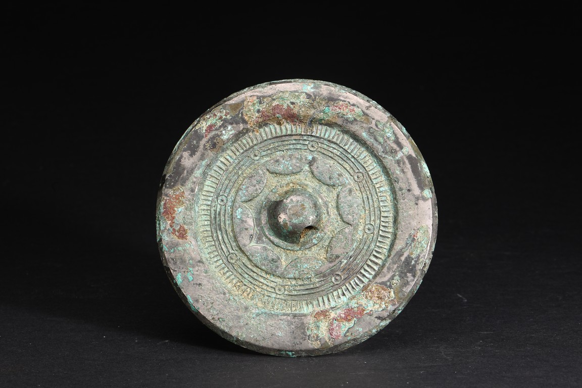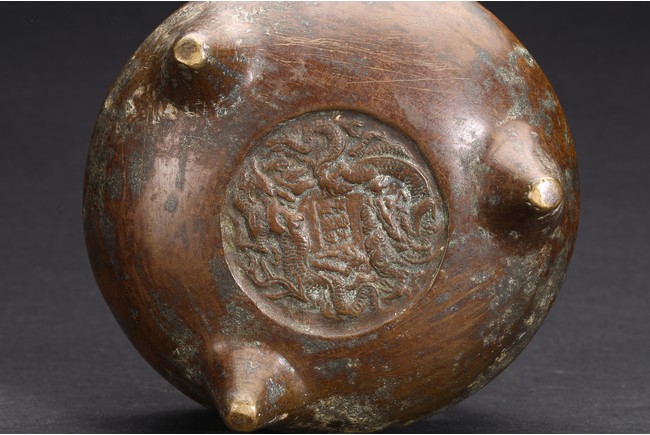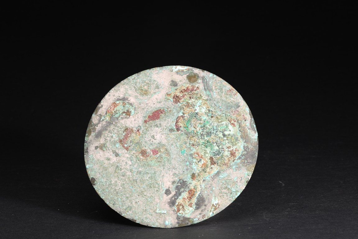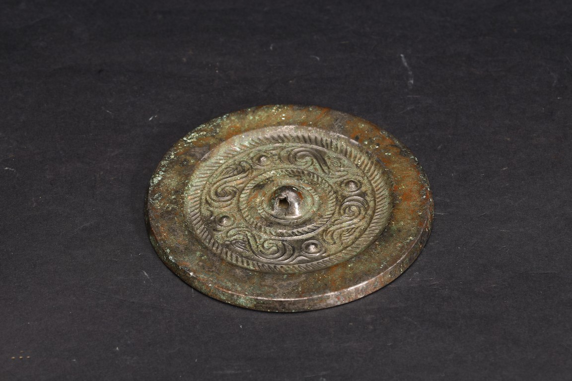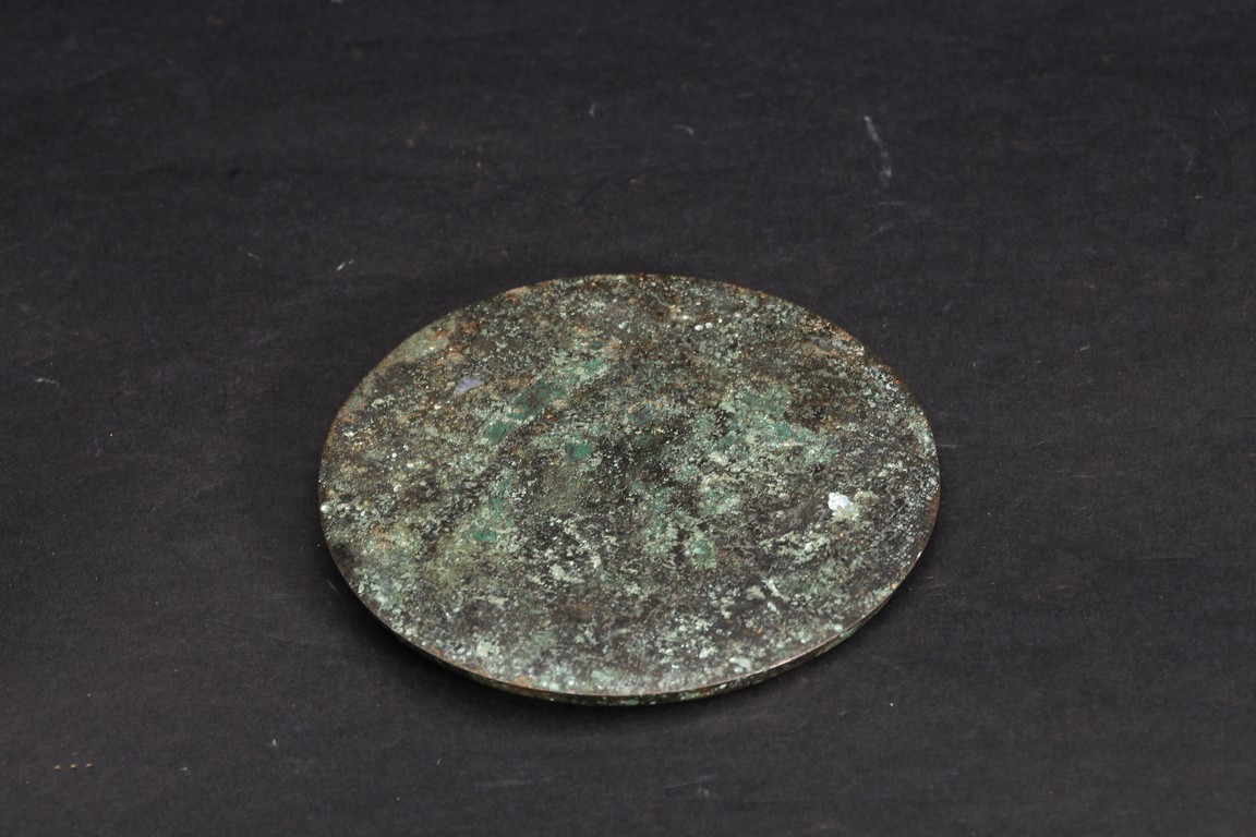 Dimension: Bronze tripod Height: 3 3/8 in (8.6 cm) Diameter: 6 5/8 in (16.8 cm) A bronze patterned mirror D: 3 5/8 in (9.2 cm)
