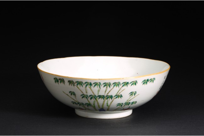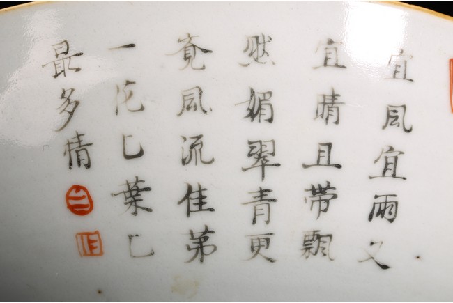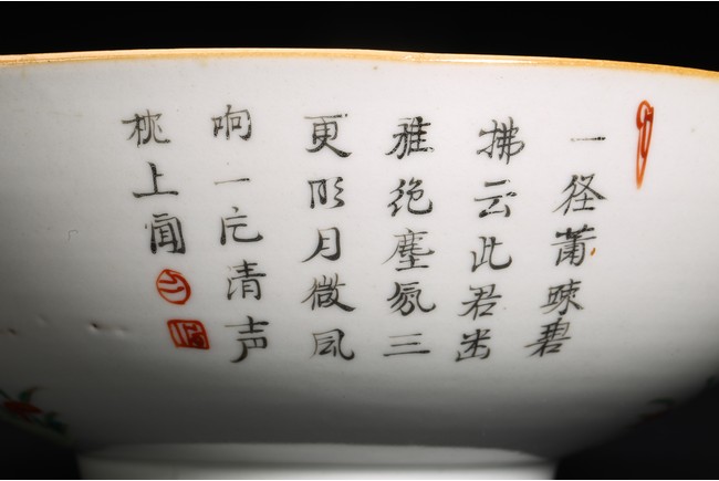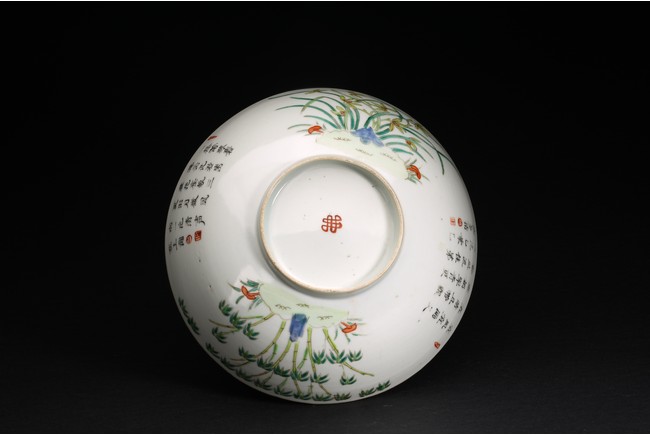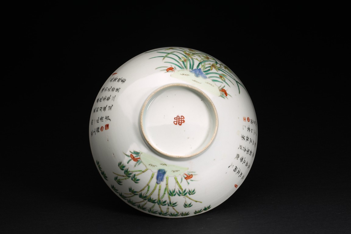 Republic period. The bowl decorated with orchids and inscribed with poem, base with mark.