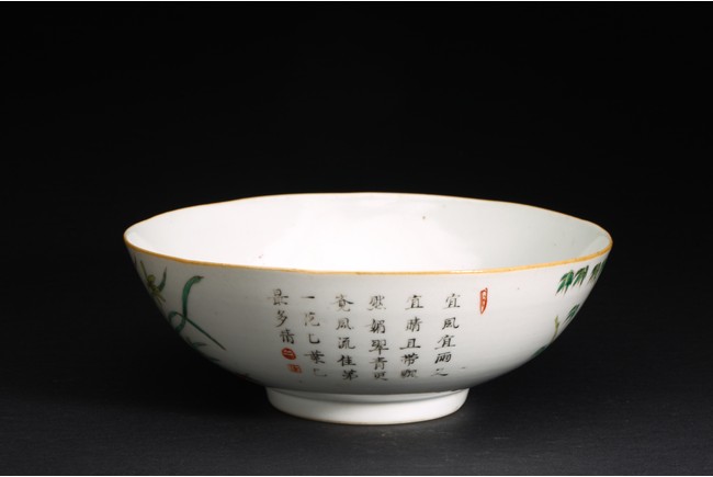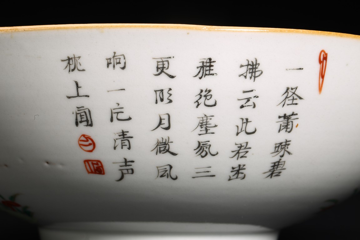 A FAMILLE ROSE INSCRIBED BOWL 民國 粉彩蘭花詩文碗