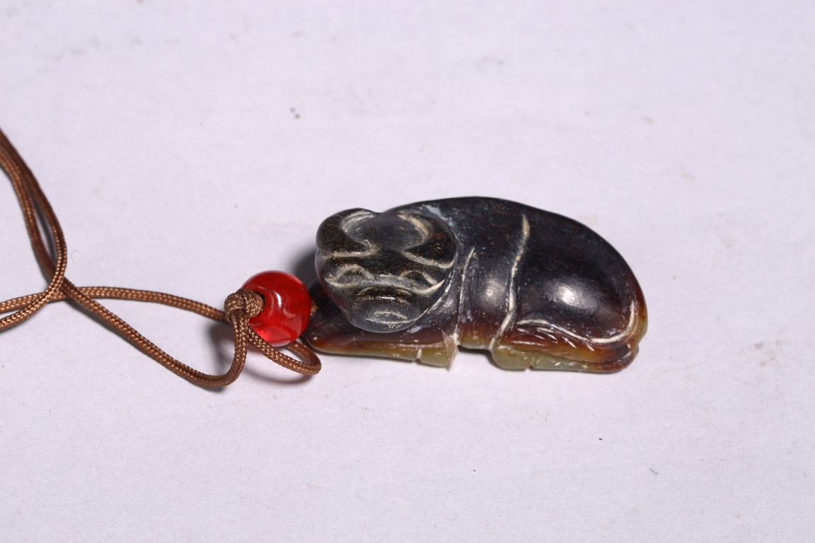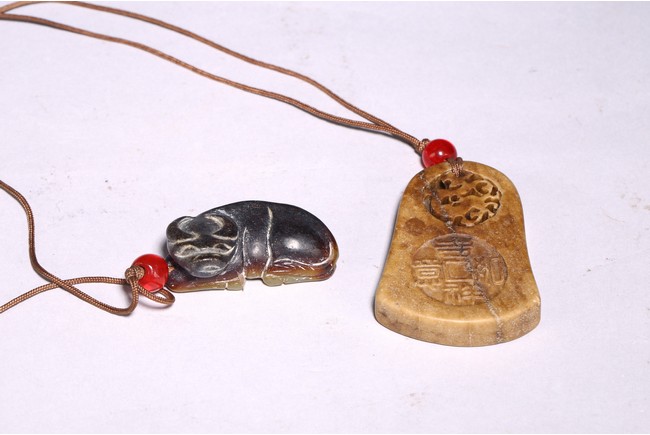 A GROUP OF TWO JADE CARVINGS 古玉把件一組兩件