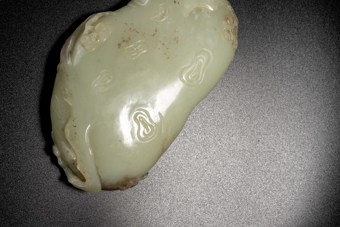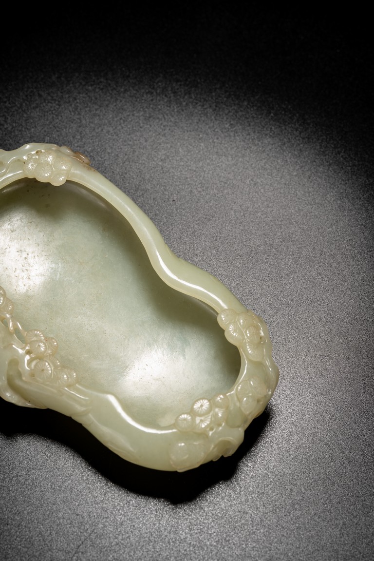 Qing Dynasty period. The washer carved with pine trees in relief around the exterior, the stone is of even white tone with some small dark spots.