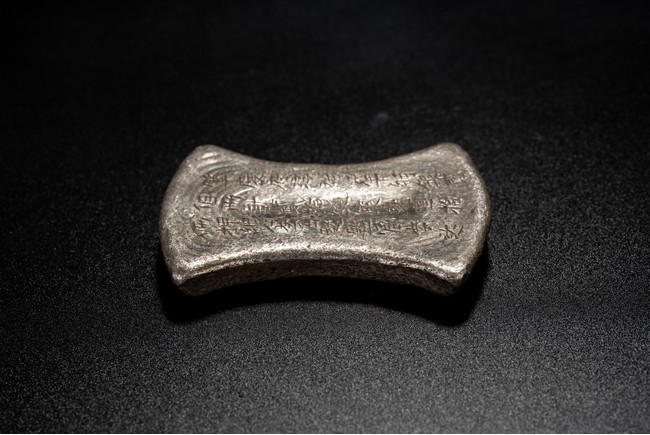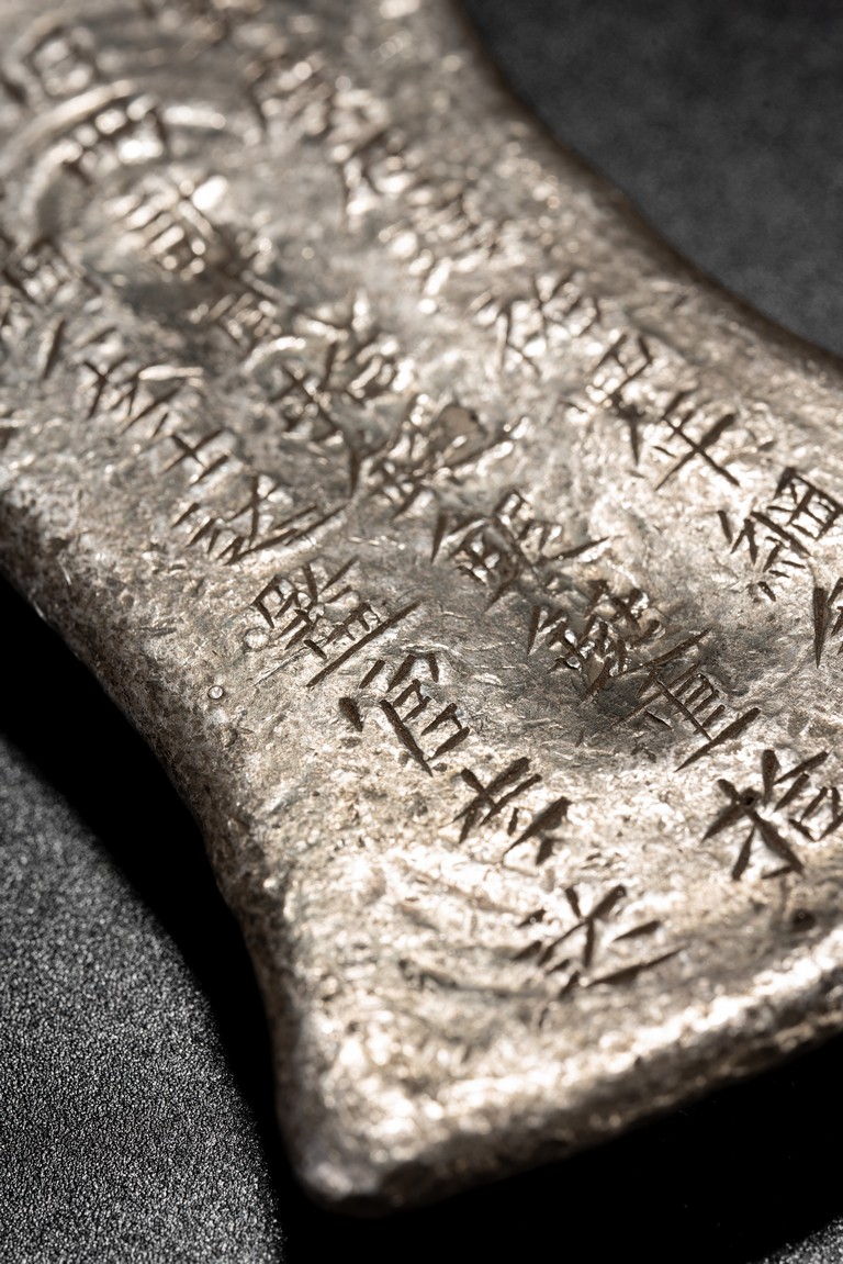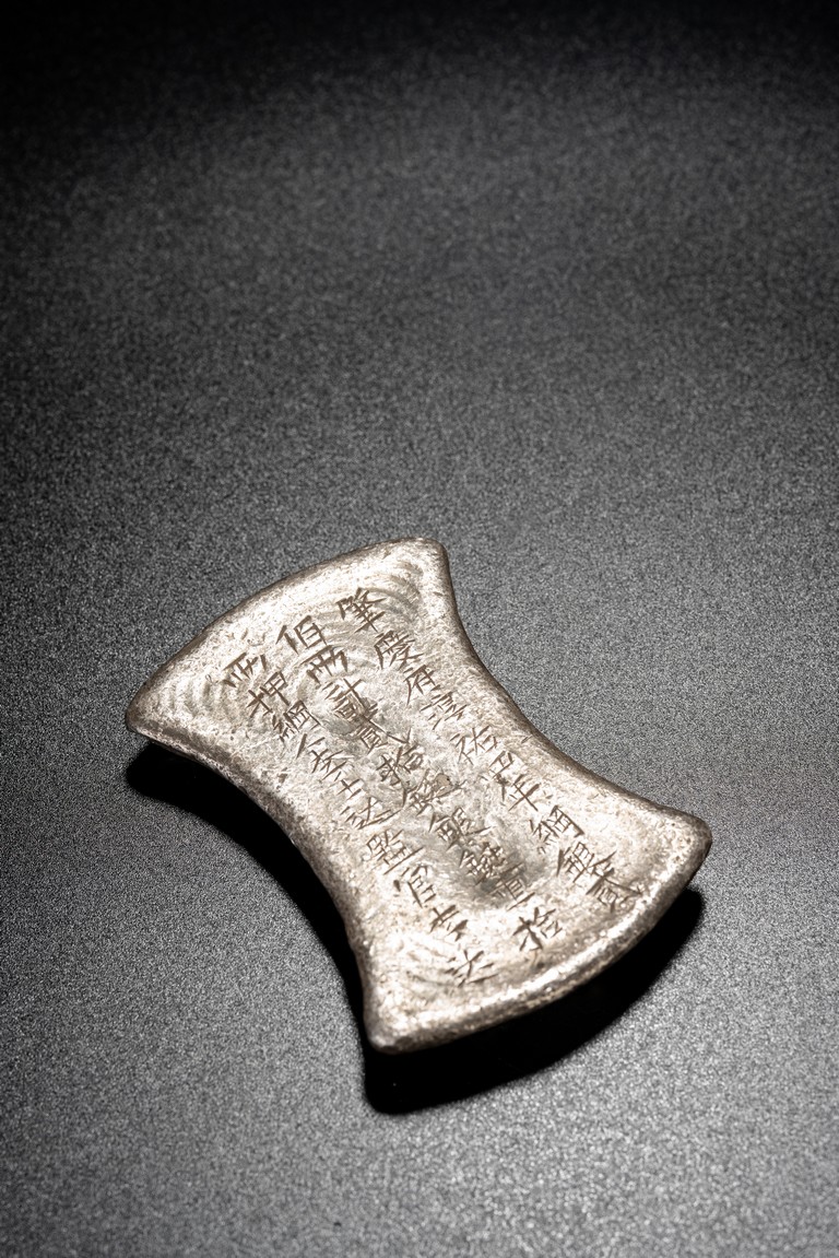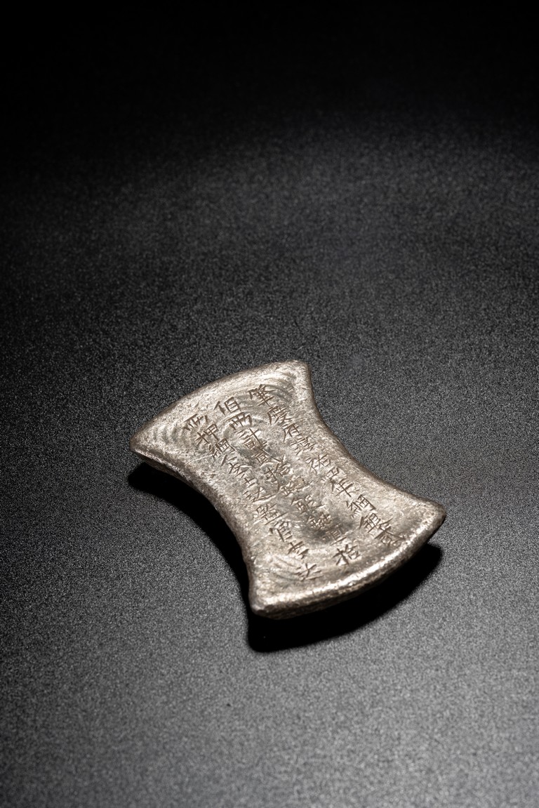 A CHINESE SILVER INGOT WITH INSCRIPTIONS 清 銀錠一枚