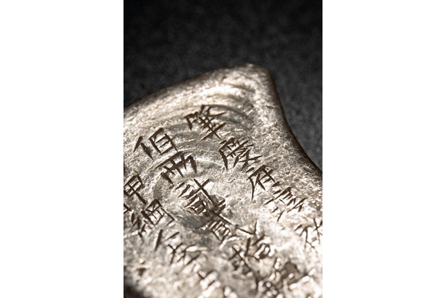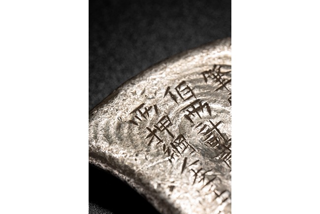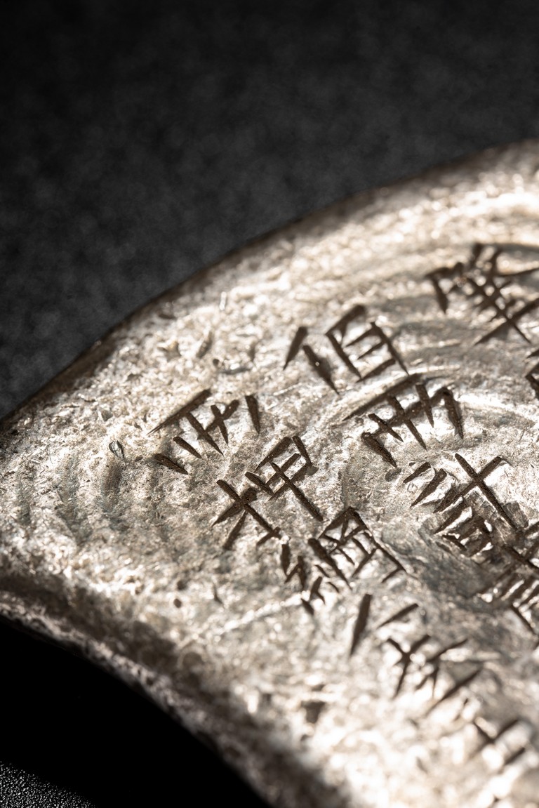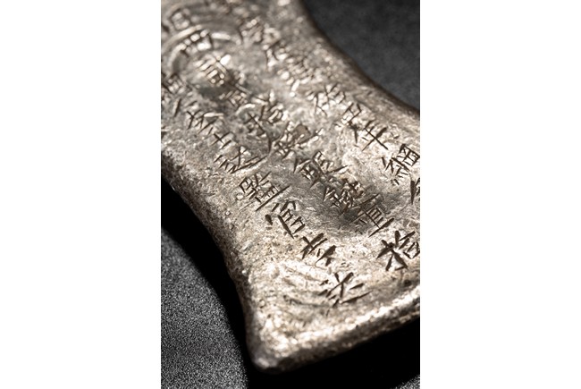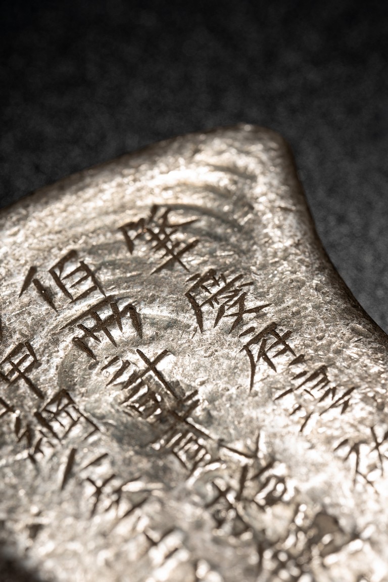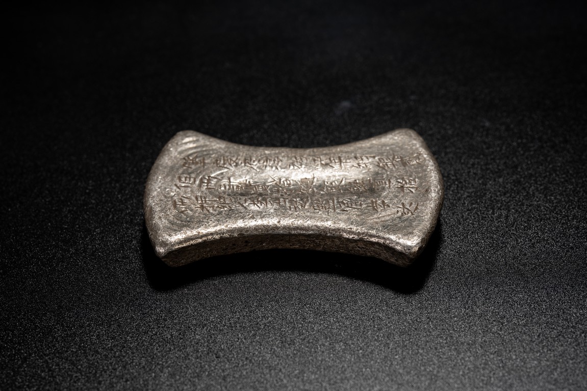 A CHINESE SILVER INGOT WITH INSCRIPTIONS 清 銀錠一枚