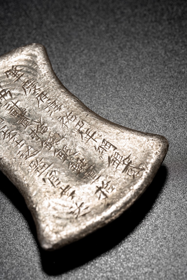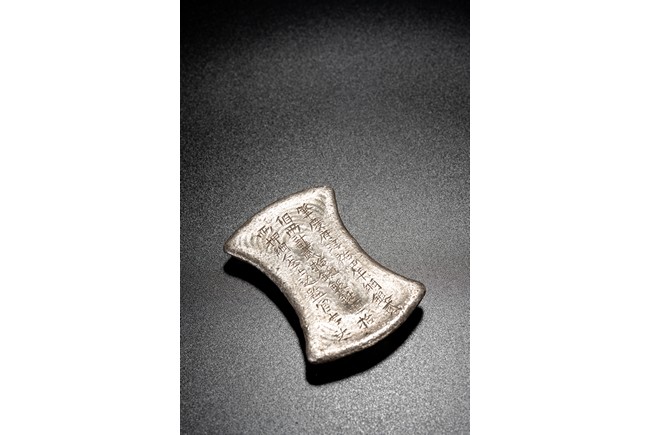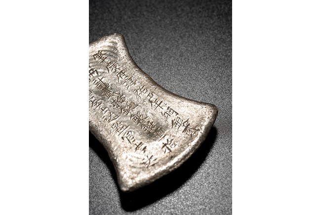 Qing Dynasty period. The ingot inscribed with inscriptions to the top.