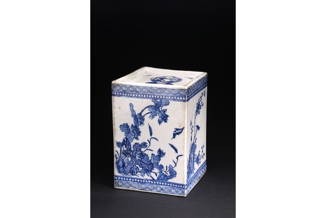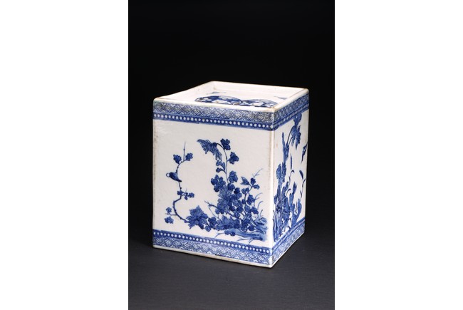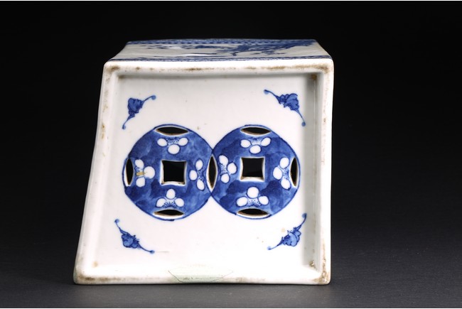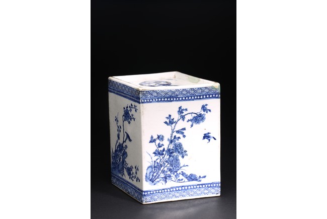 Qing Dynasty period. Of rhombus shape, the exterior decorated with scenes of birds and flowers, top with openings.