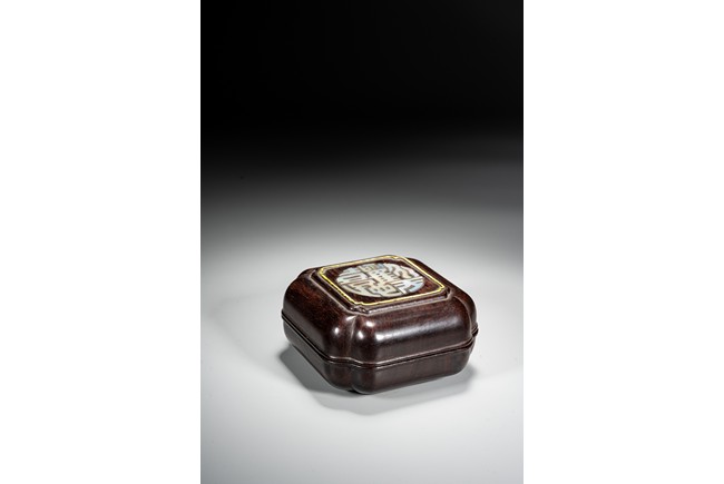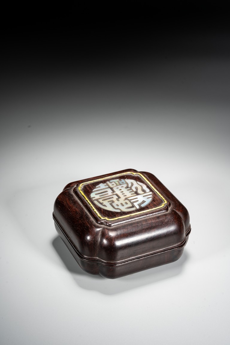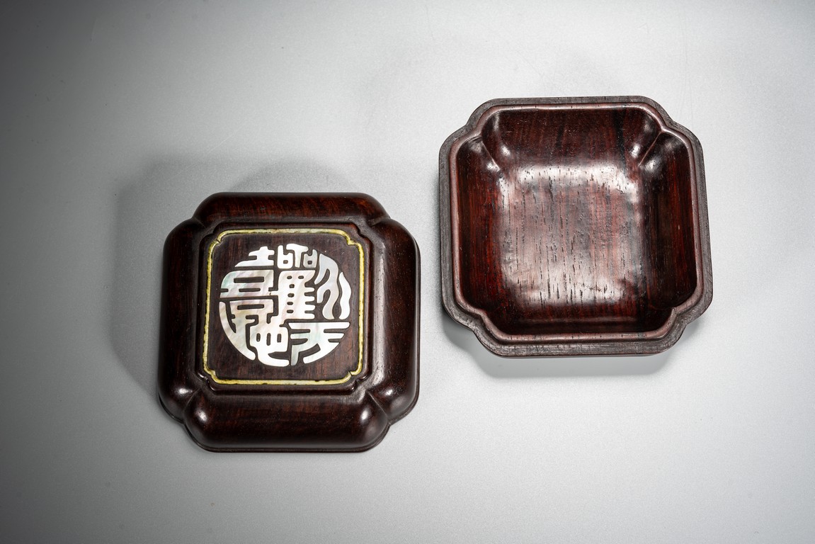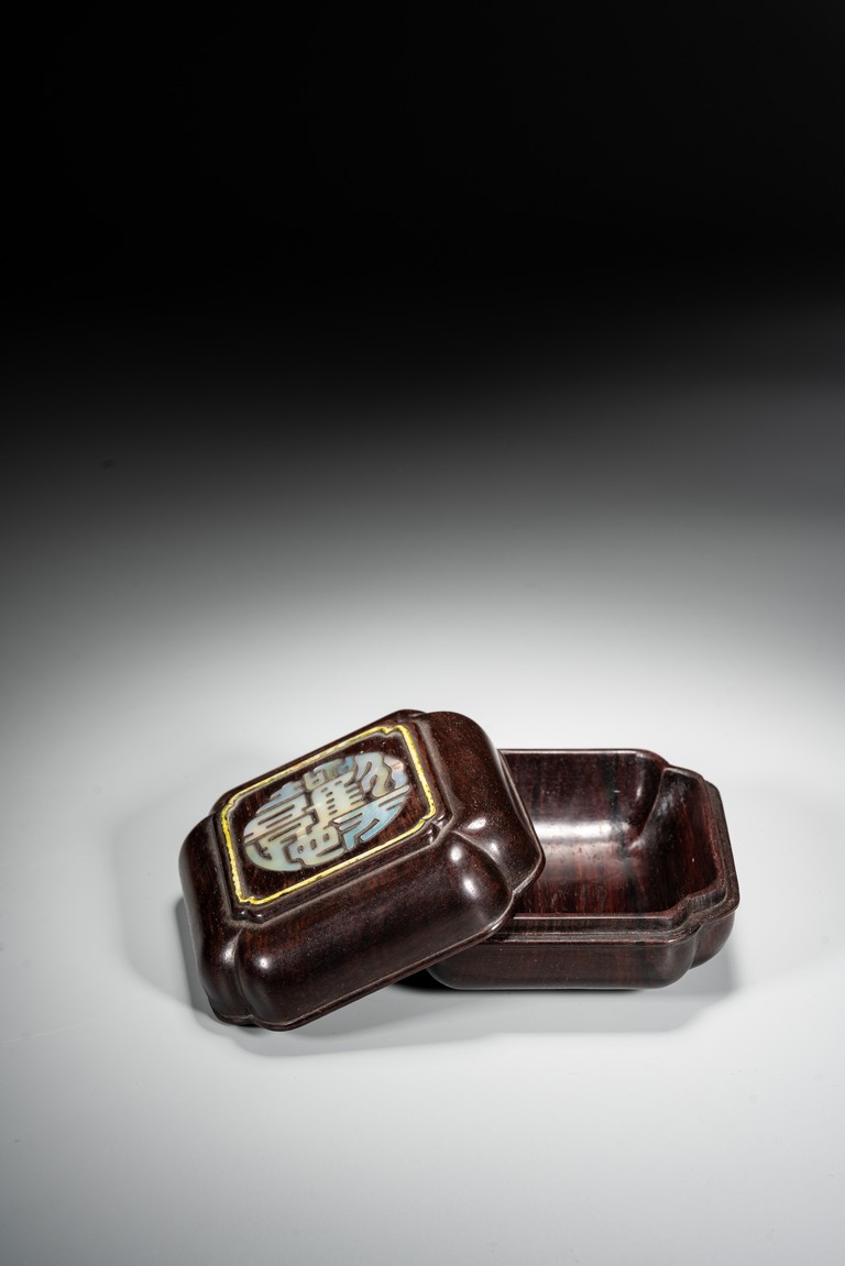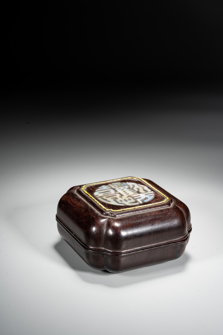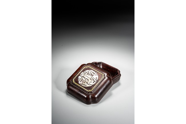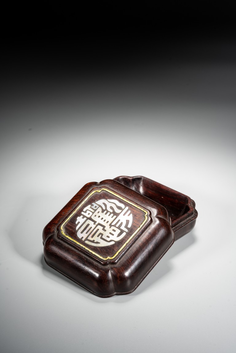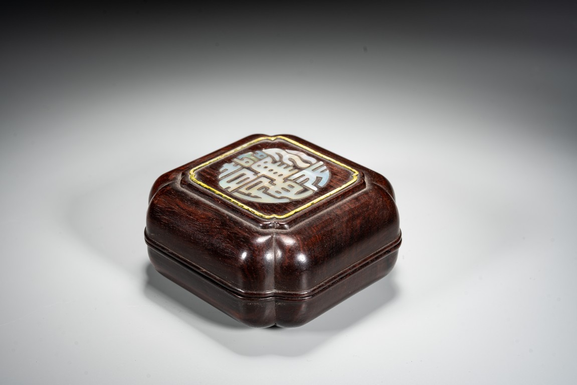Qing Dynasty period. The box cover embellished in mother of pearl with four stylized auspicious characters.