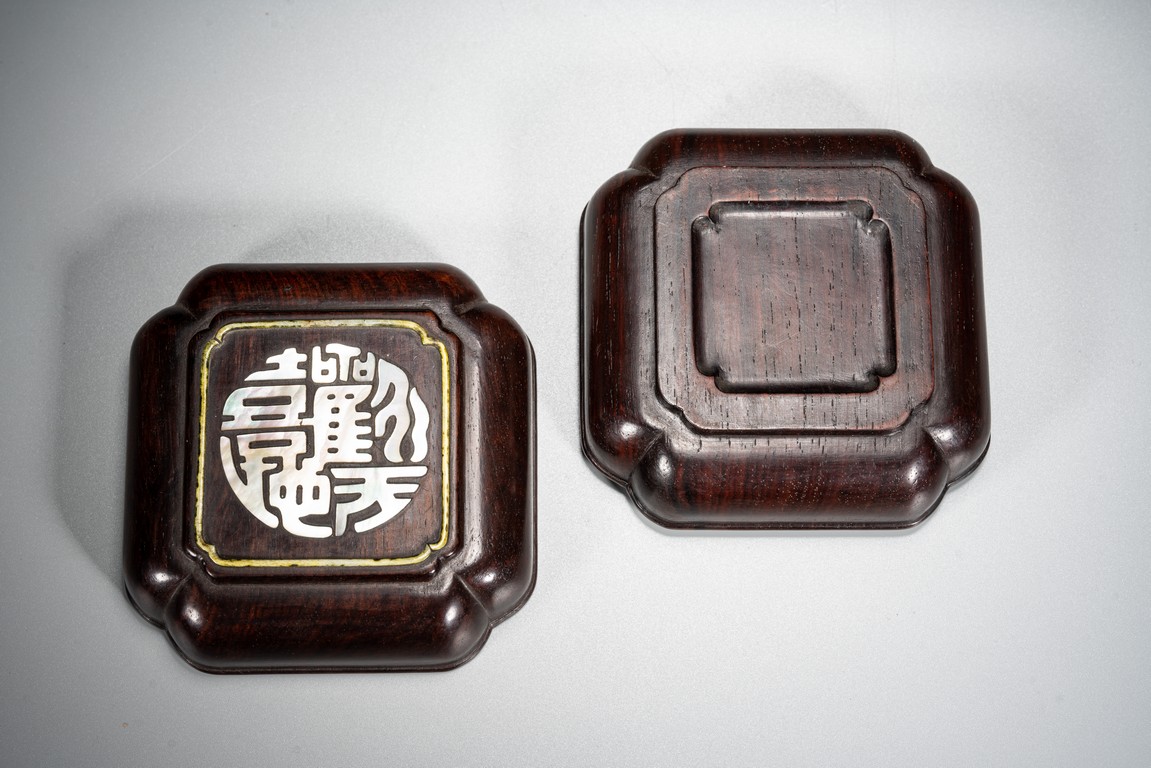 清紫檀木嵌多寶蓋盒,文房雅器、取料上乘紫檀木、紋理清晰、皮殼老道、包漿醇厚、鑲嵌螺鈿做工精美考究,宮廷氣息顯著,值得收藏。