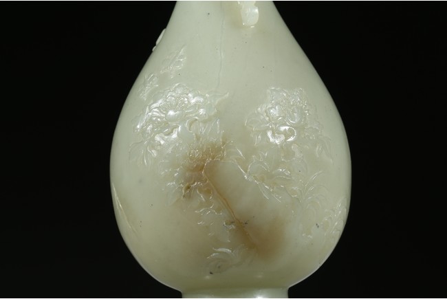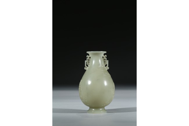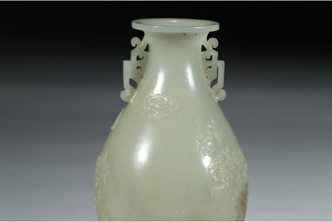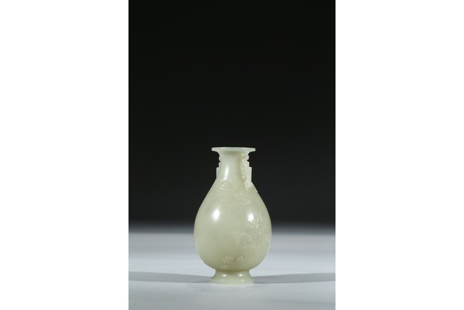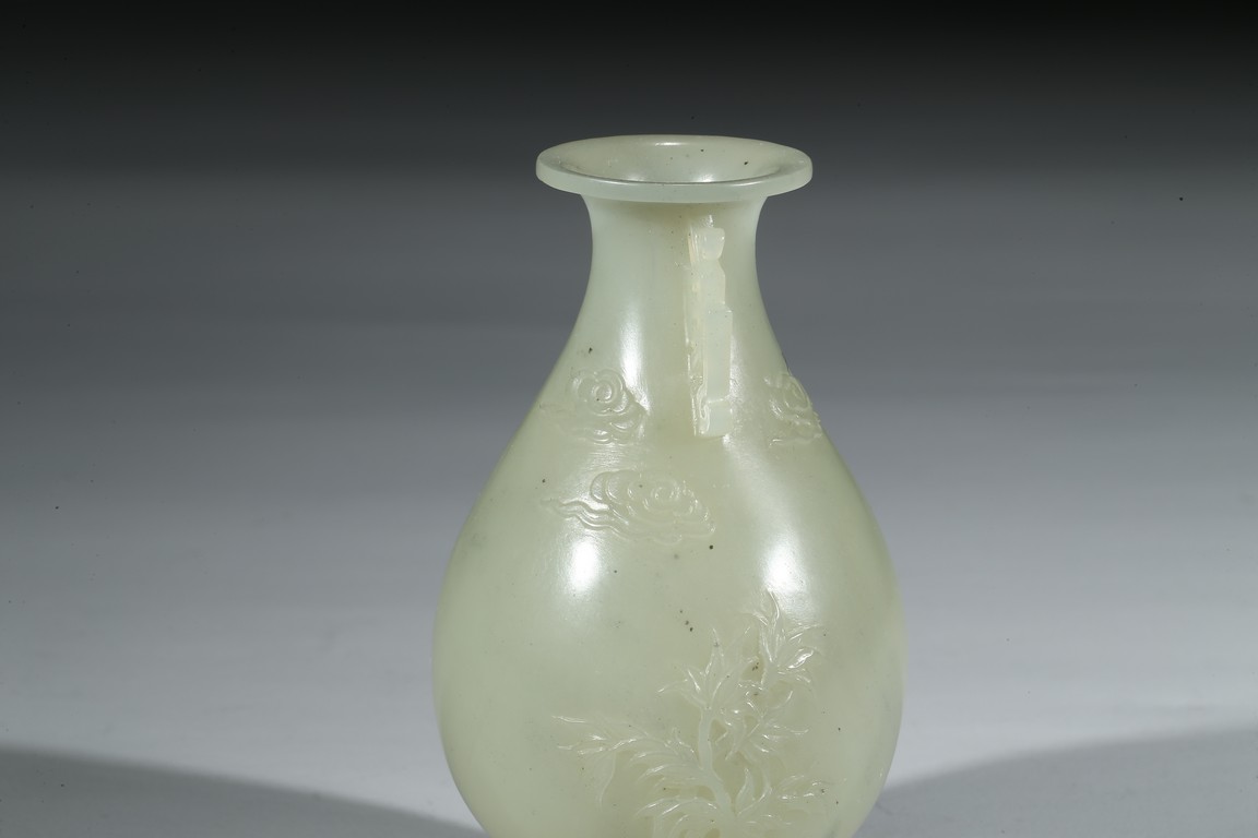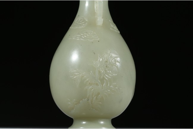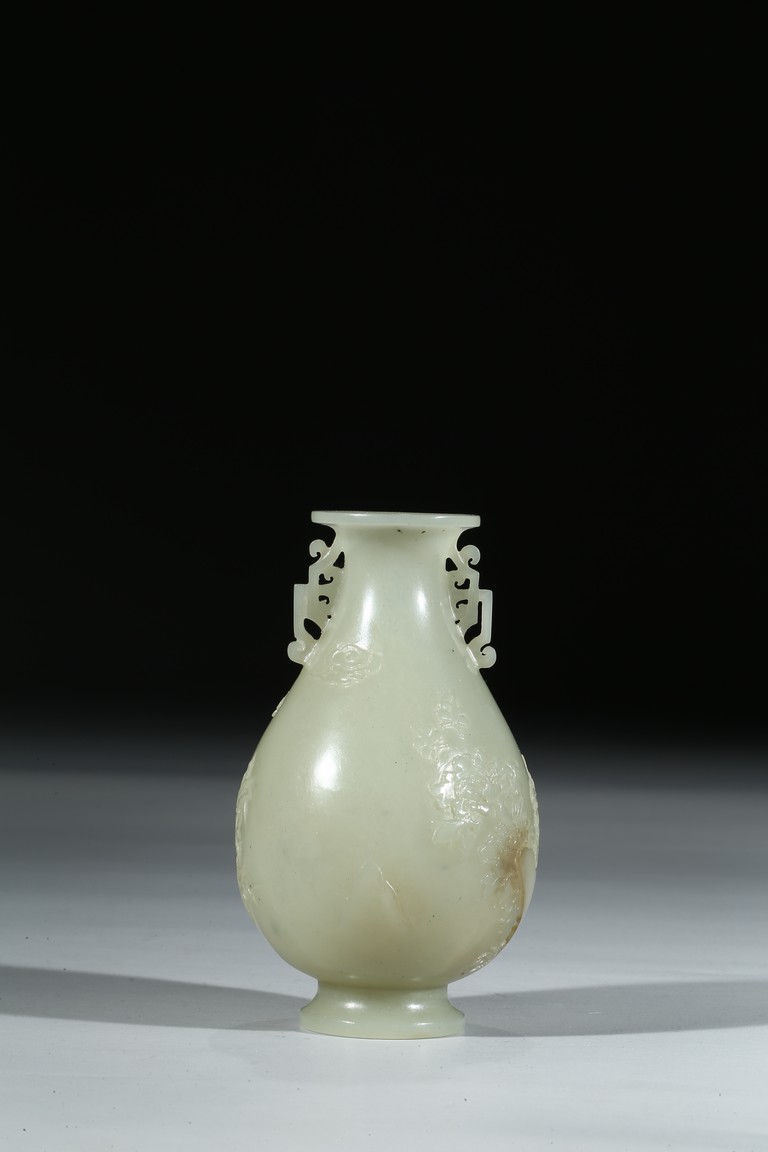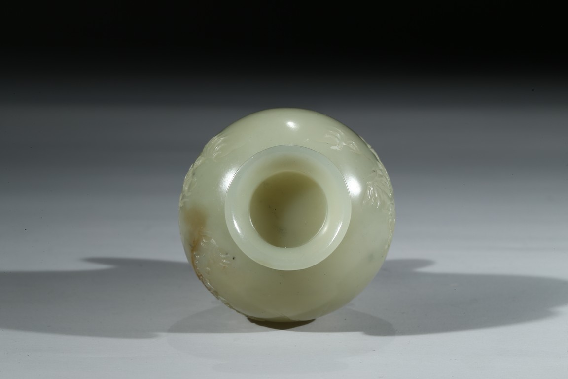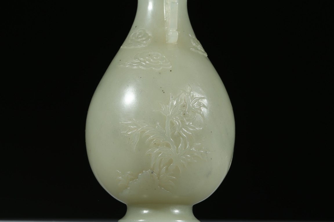A CELADON JADE CARVED VASE 玉雕花卉紋小瓶