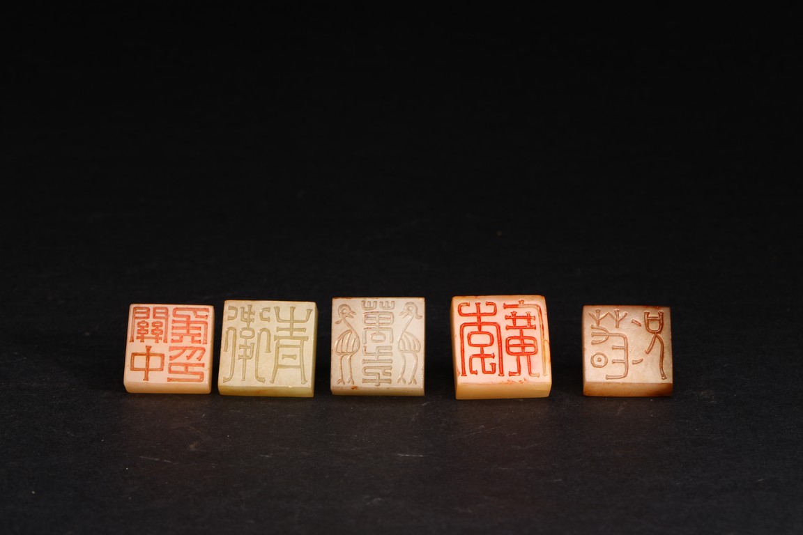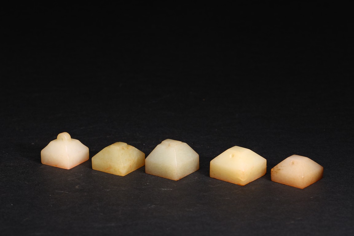 A GROUP OF FIVE JADE SEALS 明 各式玉印章一組五件